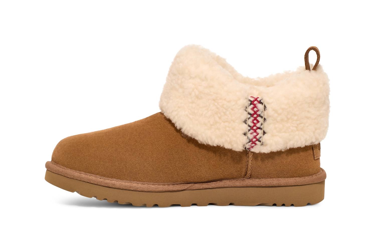 Rainboots so cute, you'll want to wear these even on the lightest drizzle days. Elevate your winter wardrobe with the Women's Ultra Mini Braid Boots by UGG, featuring chestnut leather for a sleek look in the colder months. These versatile boots incorporate a 17mm Twinface sheepskin upper and a suede heel counter, offering both style and warmth. Equipped with a Treadlite by UGG™ outsole and a foam footbed, they ensure ultimate comfort and traction. Perfect for travel and inspired by 90s fashion, these boots are crafted to pair effortlessly with any outfit for endless styling options.