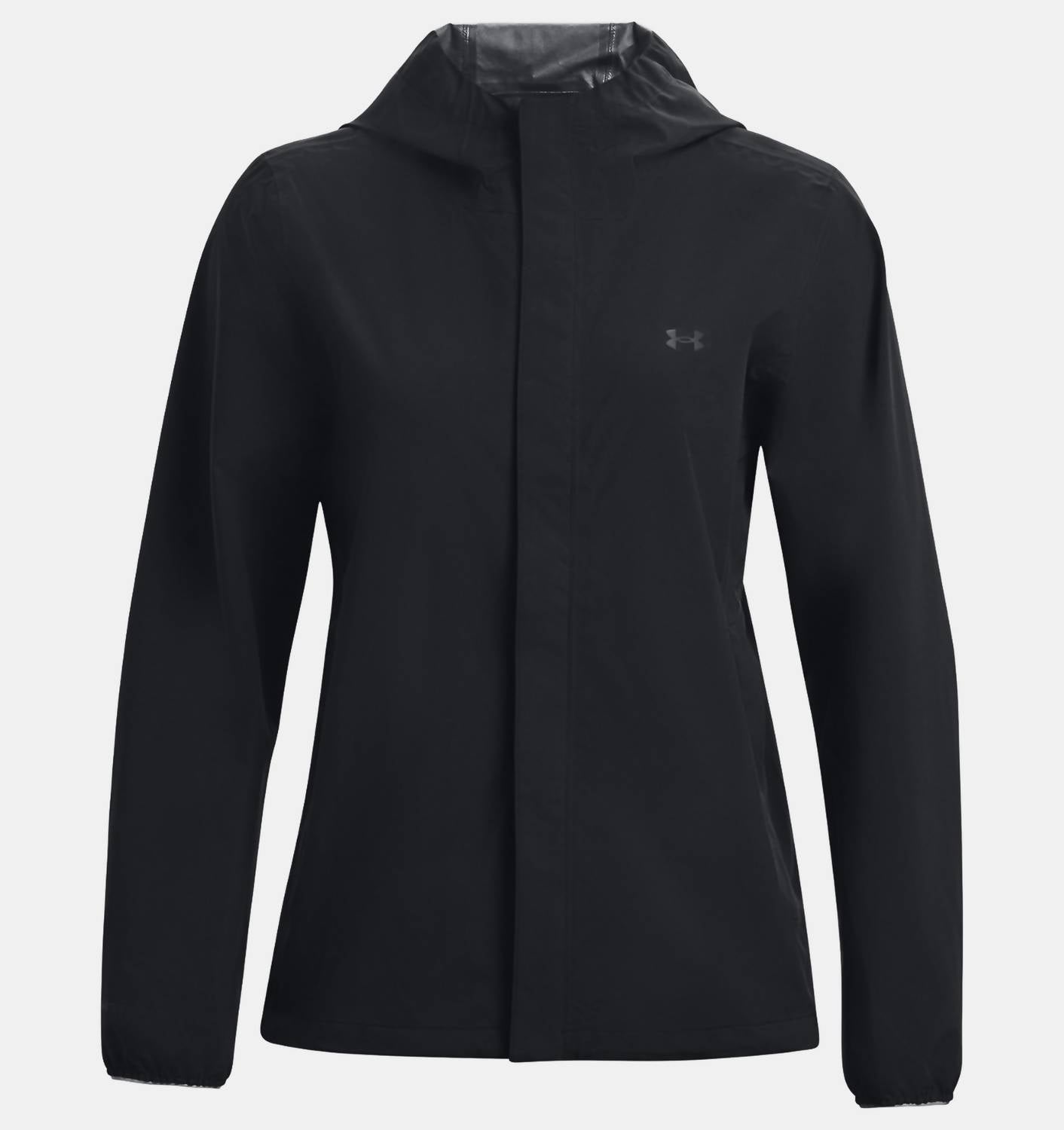 The ultimate cool-girl utility jacket. Designed for the ultimate training experience even in the harshest weather. Long-sleeve utility jacket. Boasts 100% polyester fabric. Enhanced with waterproof, windproof, and breathable properties, all while maintaining superior flexibility with its 4-way stretch material. Featuring a convenient full zip closure and packable into its right-hand pocket for easy portability. Enhanced with UA Storm technology and a dropped. Shaped hem with a bungee adjust for a custom fit. Garment should be washed & dried zipped up. Machine wash cold with like colors. Do not bleach. Tumble dry low. Do not iron. Do not use softeners. Do not dry clean.