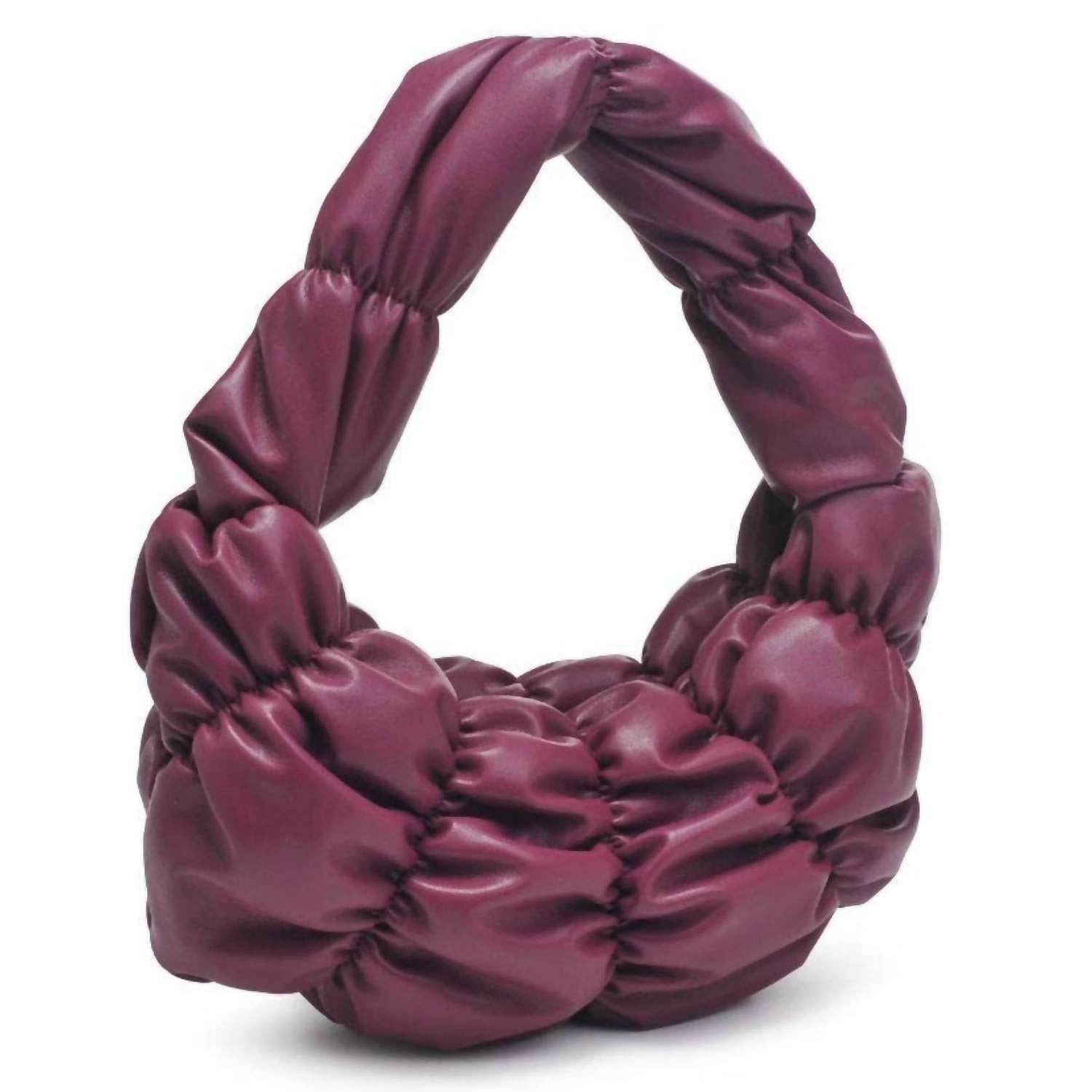 The Stella Puffy Quilted Vegan Leather Clutch by Urban Expressions in wine color is the perfect addition to any elegant ensemble. This stylish clutch is made from nylon with smooth vegan leather accents, highlighted by a chic puffy quilted design and glamorous gold hardware. It features a secure zipper closure and a well-organized interior with a fabric lining and a zip pocket. Dimensions of 14.1 x 3 x 5.5 inches ensure ample space for your essentials.