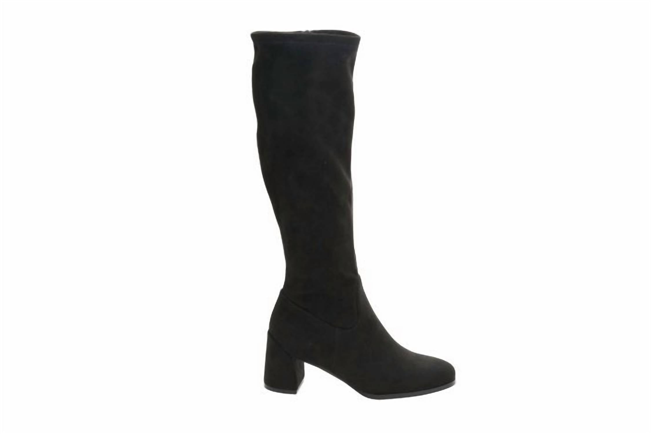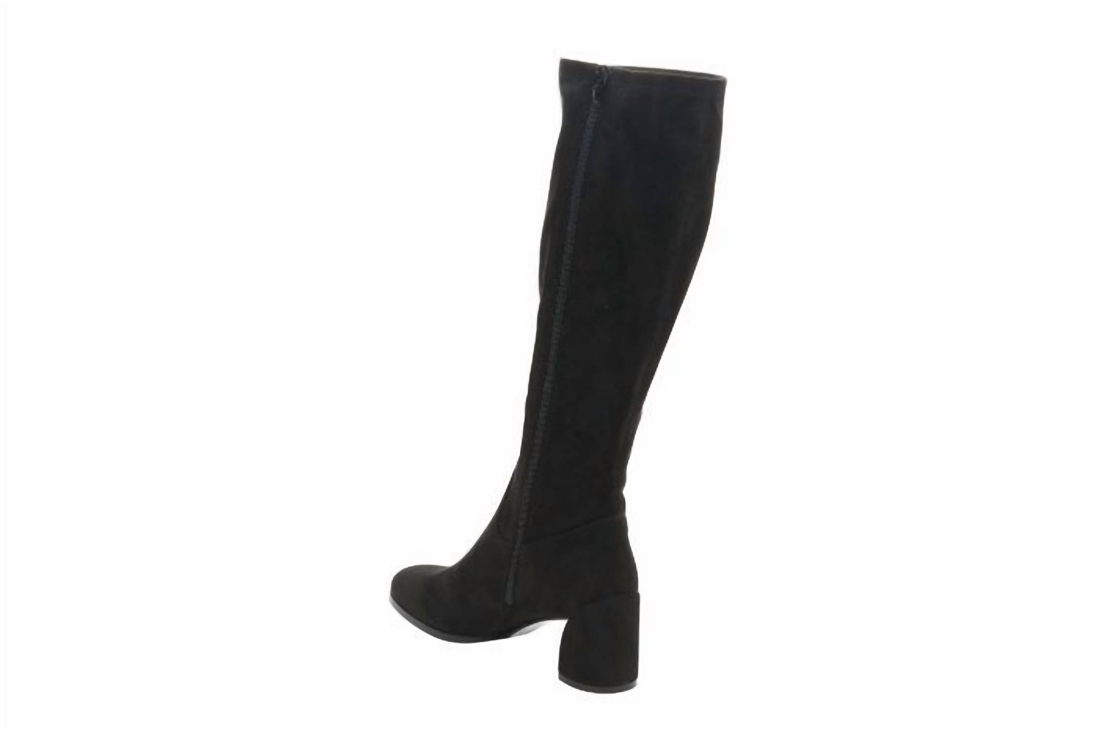 Introducing the Women's Caissy Punto Stretch Boot by VANELi, a sophisticated choice for transitioning from work to weekend. This over-the-knee boot in black boasts a sleek almond toe and a comfortable covered block heel standing at 2 1/4 inches high. Crafted with a leather upper and lining, and fitted with a synthetic sole and cushioned insole, it offers both style and comfort. Country of Origin: Imported.