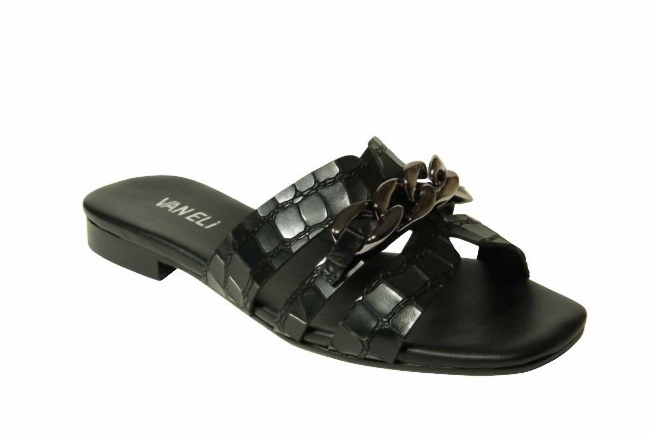 A classic loafer that is both comfortable and polished. Step into style with the Women's Errita Flat Sandal by Vaneli, decorated with a chain detail. These sandals feature a sleek block heel that's flat, enhancing comfort without sacrificing sophistication. Made from high-quality leather, this pair is perfect for summer, offering a cushioned feel for all-day comfort. With a narrow fit, these sandals are a must-have for fashion-forward women looking to make a subtle statement.