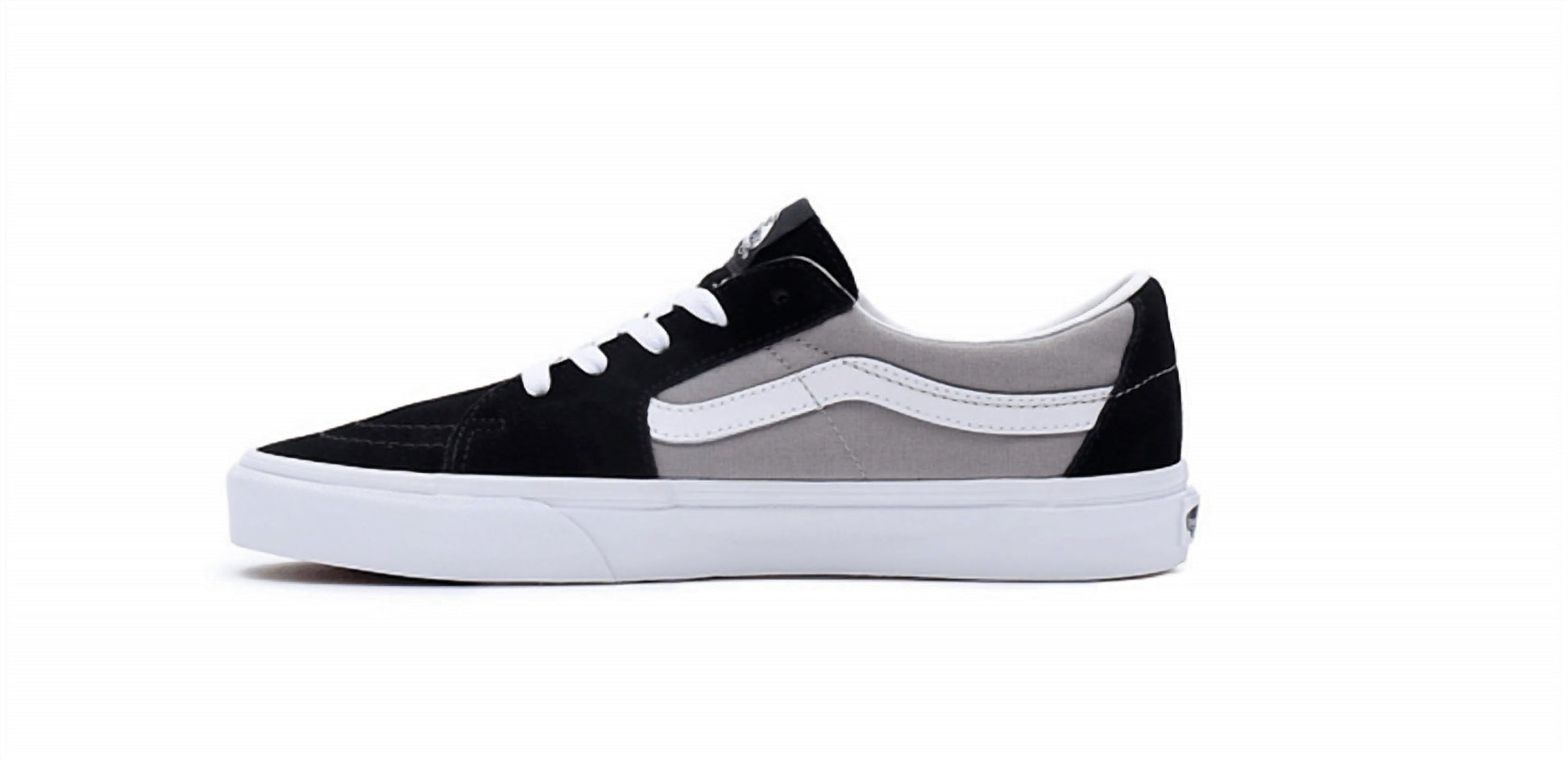 Step into timeless style with the Men's Sk8-Low Sneaker by Vans, a fresh take on the legendary Sk8-Hi shoe. This Kalamata low-top sneaker combines durable canvas with supple suede uppers, maintaining the iconic Sidestripe look. Featuring a lace-up closure, reinforced toe caps, and supportive padded collars, it's built for comfort and durability.