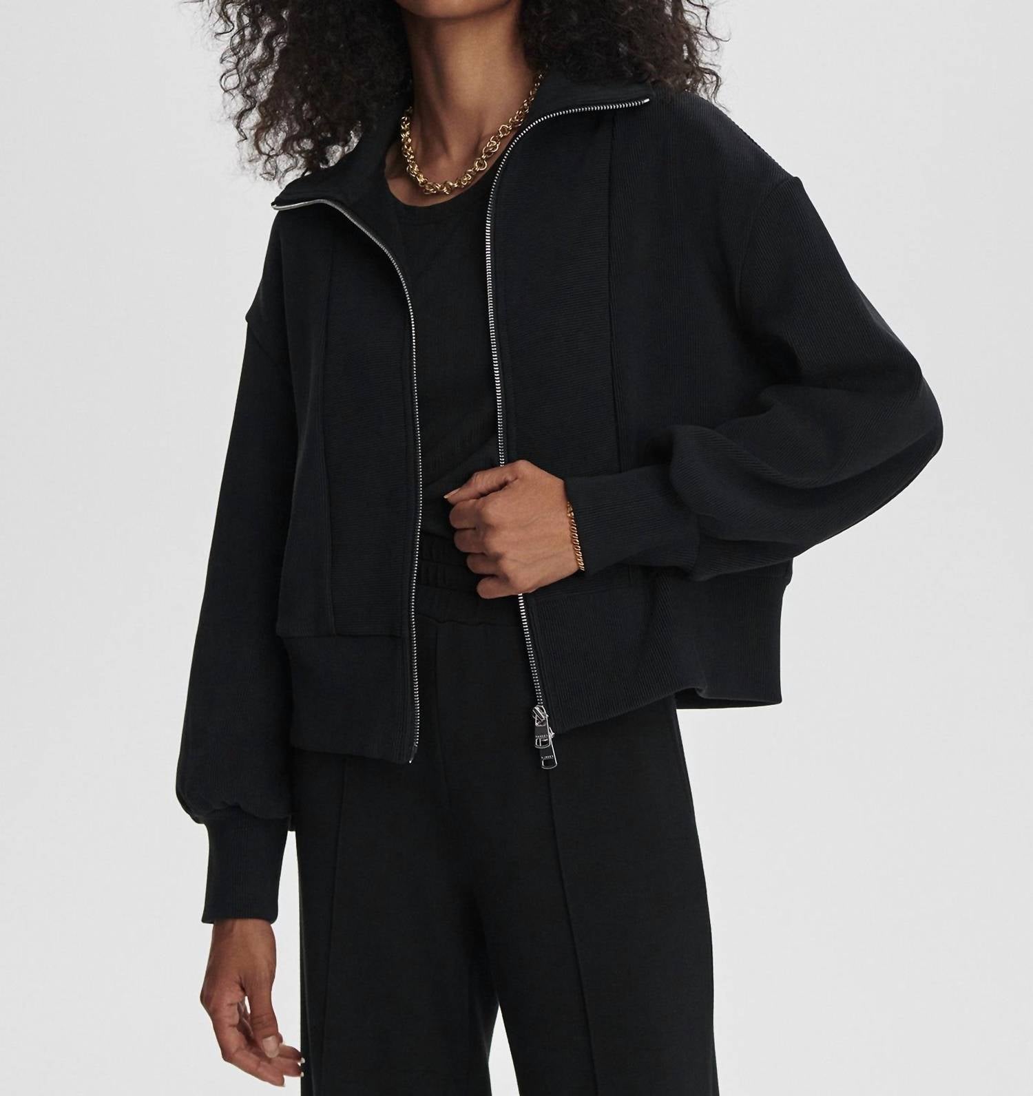 Whether you're running around town or lounging at home, this sweatshirt works for both. This piece boasts long balloon sleeves and a cutter silk feel thanks to its Cotton Blend, complemented by a tactful zip closure. Crafted with 53% Cotton, 46% Polyester, and 1% Elastane, it has a garment length of 21.65 inches, offering a modern cropped silhouette. Care for this elegant sweatshirt easily with machine wash instructions.