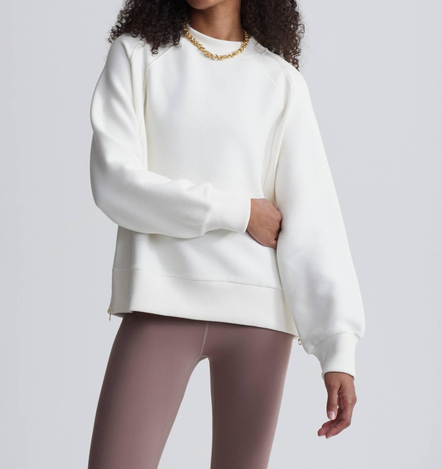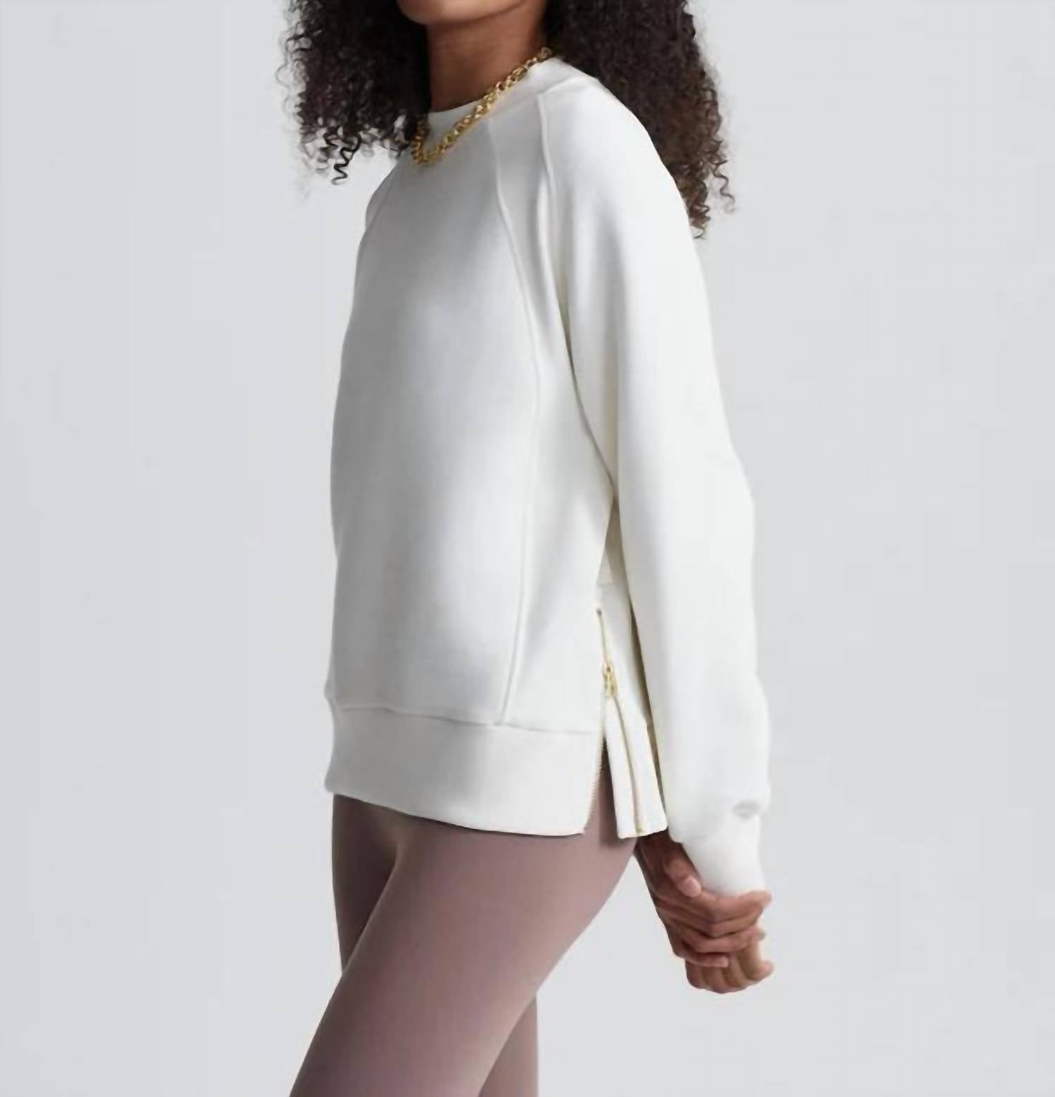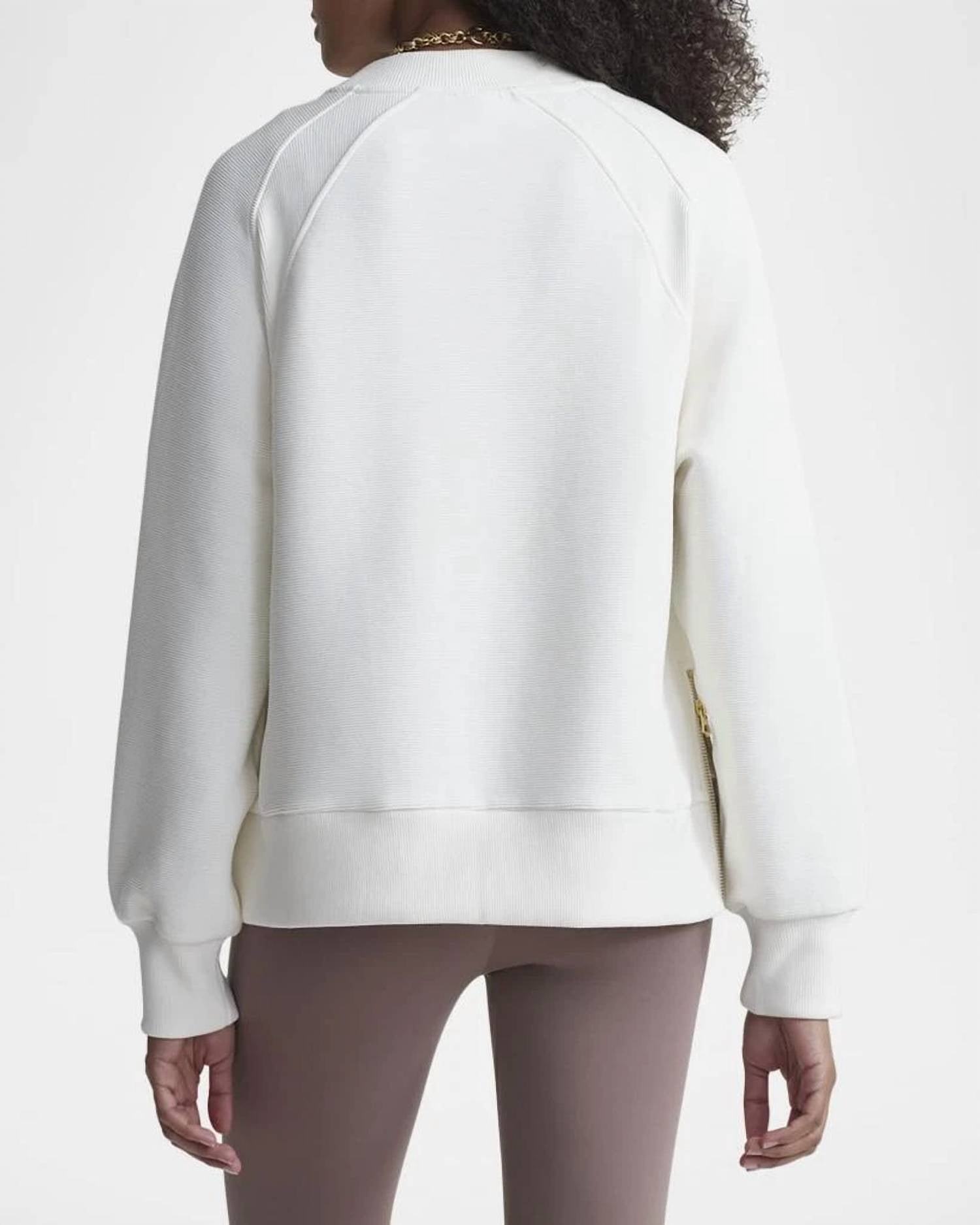 This cardigan will be a sweater-rotation favorite. Introducing the Goulding Sweat by VARLEY, a stylish addition to your wardrobe in an elegant ivory hue. Designed with long sleeves and a classic crewneck, this cardigan offers a relaxed fit that is perfect for casual outings. Closure: Pull on. Ideal for any casual setting, this solid-patterned piece delivers both comfort and sophistication.