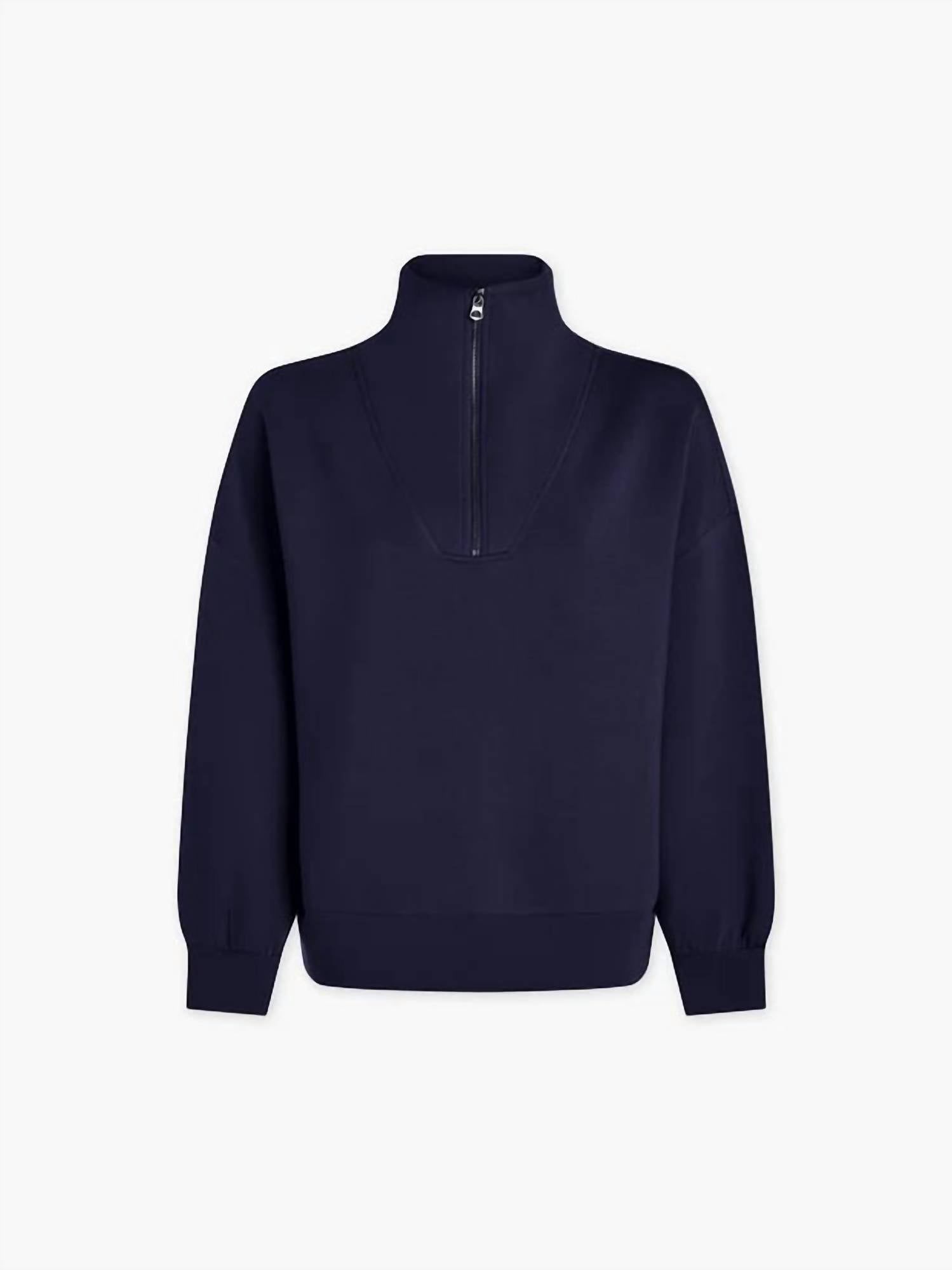 Layer under your favorite sweater or wear tucked into jeans for a perfectly polished winter look. Elevate your comfort with the Hawley Half Zip Sweater by VARLEY, available in a stunning Blue Nights hue. This oversized long sleeve sweatshirt offers a cozy mockneck and panelled, half-zip neck for versatile styling. Crafted from 72% Viscose, 23% Polyester, and 5% Elastane, it ensures both comfort and durability. Closure: Zip Closure. Care: Machine wash on a cool gentle cycle.
