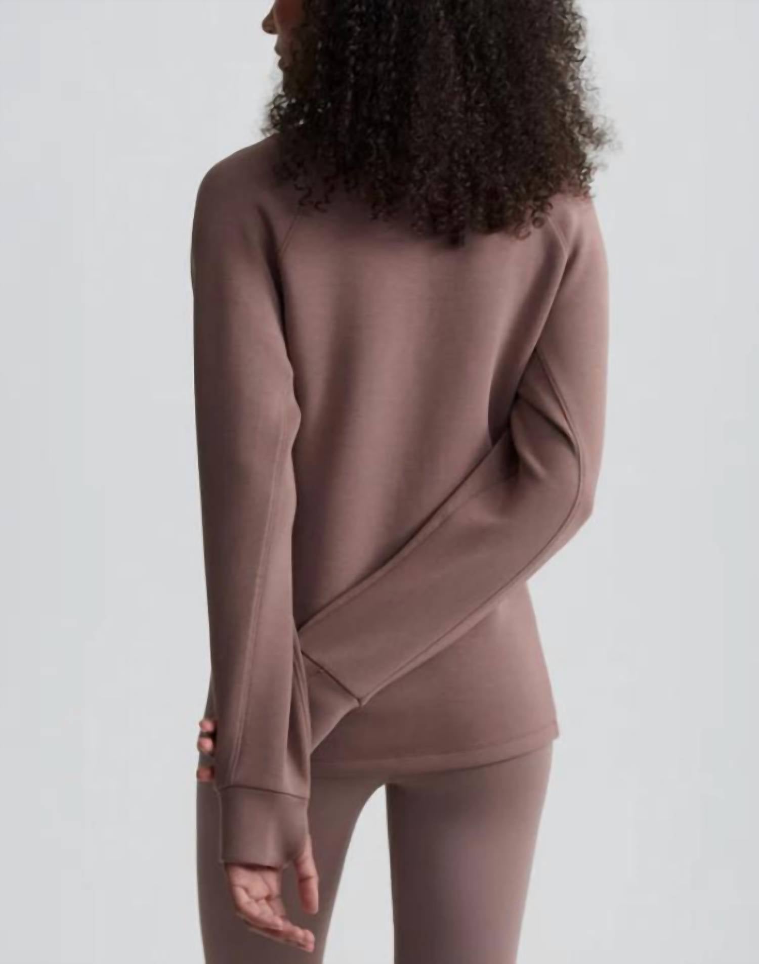 Giving off a vintage vibe, we love this varsity jacket style. Introducing the Hayden Midlayer Jacket by Varley, a must-have for active lifestyles in Deep Taupe. This women's jacket is crafted from Lightweight Spacer fabric for optimal breathability, featuring a sleek slim-fit design with long sleeves and a functional zip closure. Composition includes 47% Modal, 46% Polyester, and 7% Elastane, offering both comfort and flexibility. Care instructions recommend a machine wash with cool water, avoiding bleach and tumble drying, and laying flat to dry.