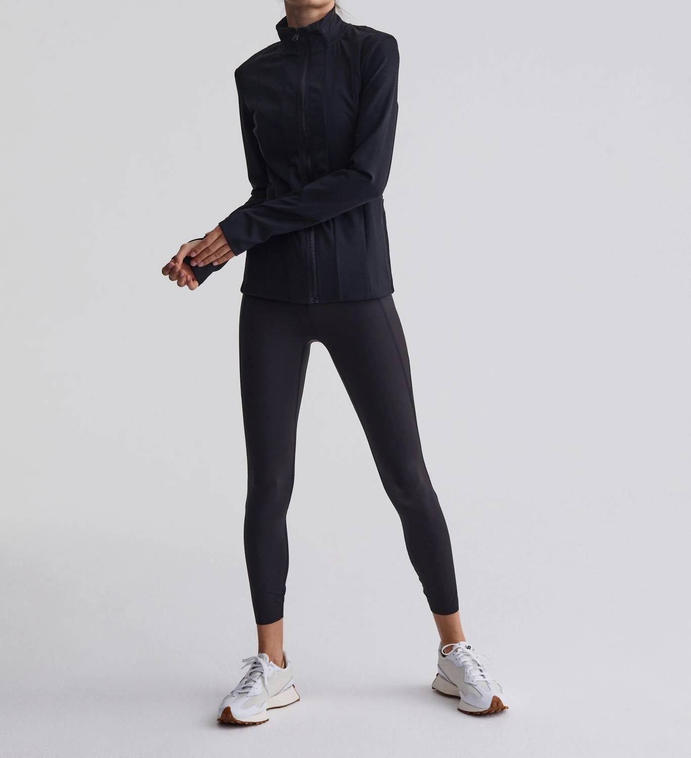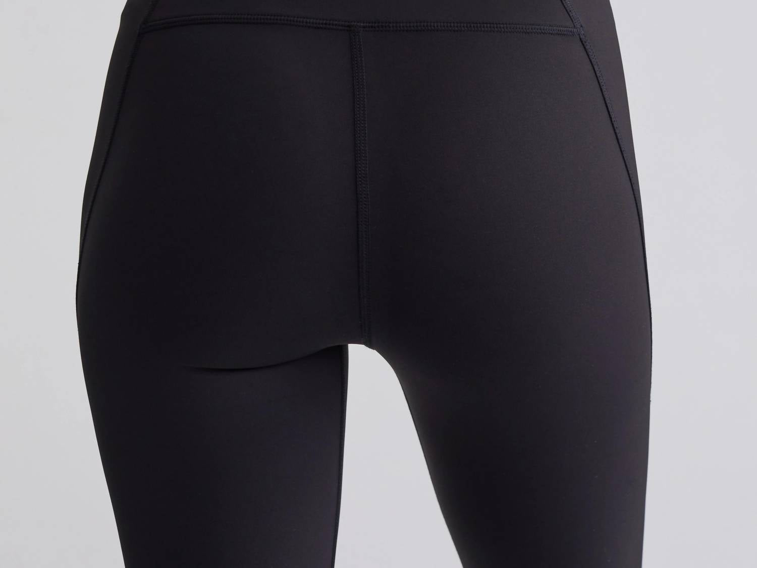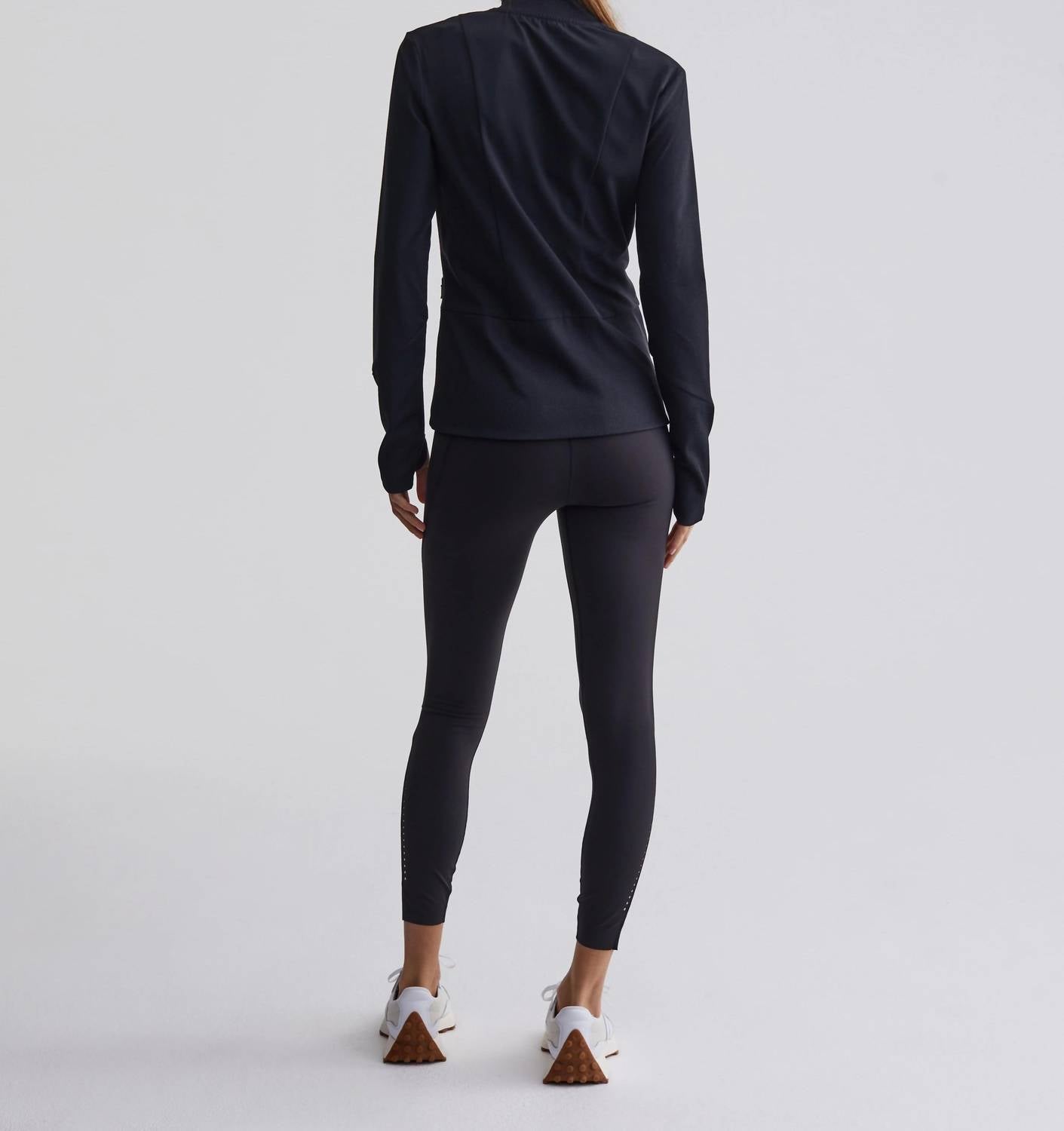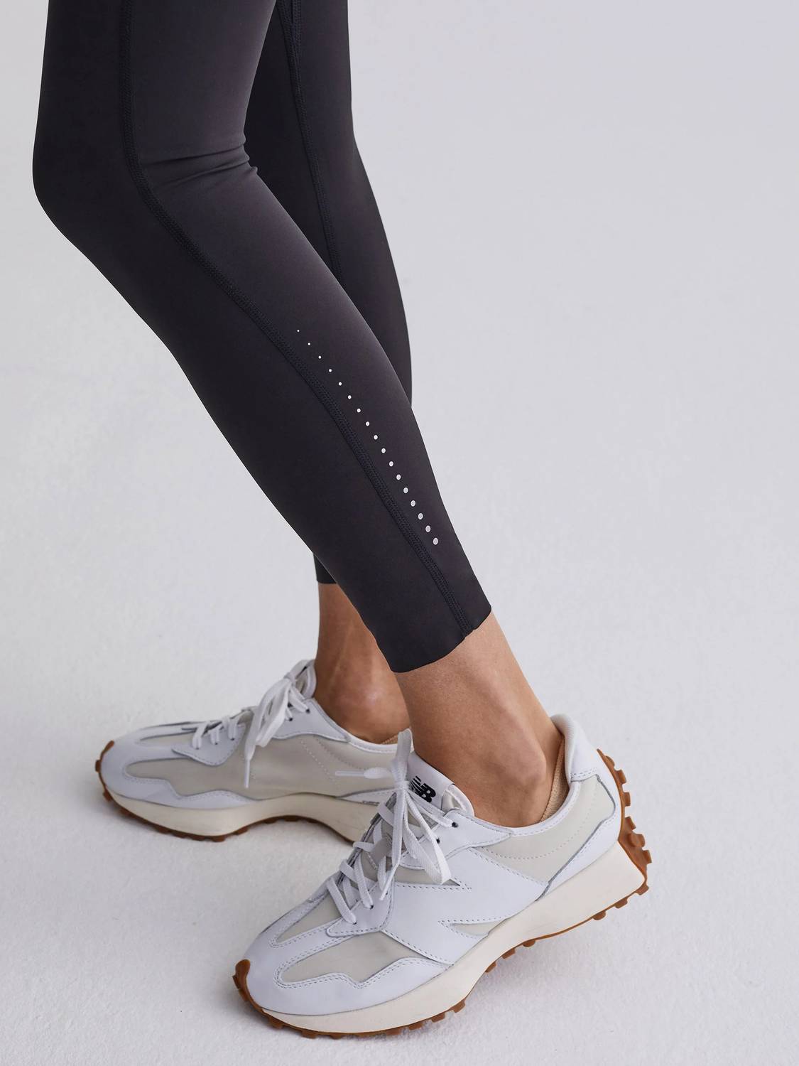 You'll be reaching for this best-selling legging all season long. High-rise leggings. Reflective dots above ankles. Four-way stretch. Moisture management. Extended side pockets. Zippered back pocket. Compressive. Fabric: 75% Nylon, 25% Lycra. Machine wash cool. Model is 181cm wearing a size Small. Rise 9", Inseam 25".