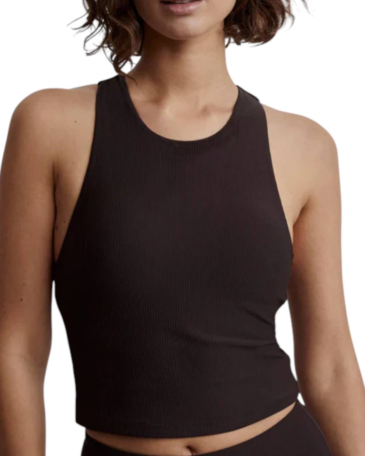 The most comfortable and supportive sports bra you'll own. Embrace comfort and style with the Let's Move Rib Kempton Bra by VARLEY, perfect for your active lifestyle. Designed in a rich Chocolate Torte hue, this sports bra is made from high-quality Nylon and features a solid pattern for a sleek look. Its fitted shape, inner shelf, and removable cups provide the support you need for workouts, errands, or relaxation. Ideal for springtime athleisure, it moves seamlessly with you.