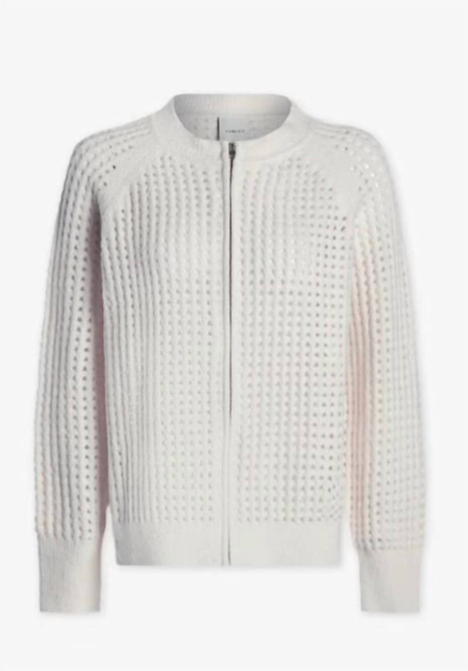 Cute, casual, and comfortable. This jacket is a must have. Introducing the Marta Boucle Knit Jacket by Varley, a sophisticated addition to your wardrobe in a versatile Coconut Milk shade. Featuring long sleeves and a contemporary mesh knit design, this jacket is crafted from a luxurious blend of materials, creating a lightweight and comfortable feel. The sleek zip closure adds a modern touch. Care is easy with dry clean instructions.