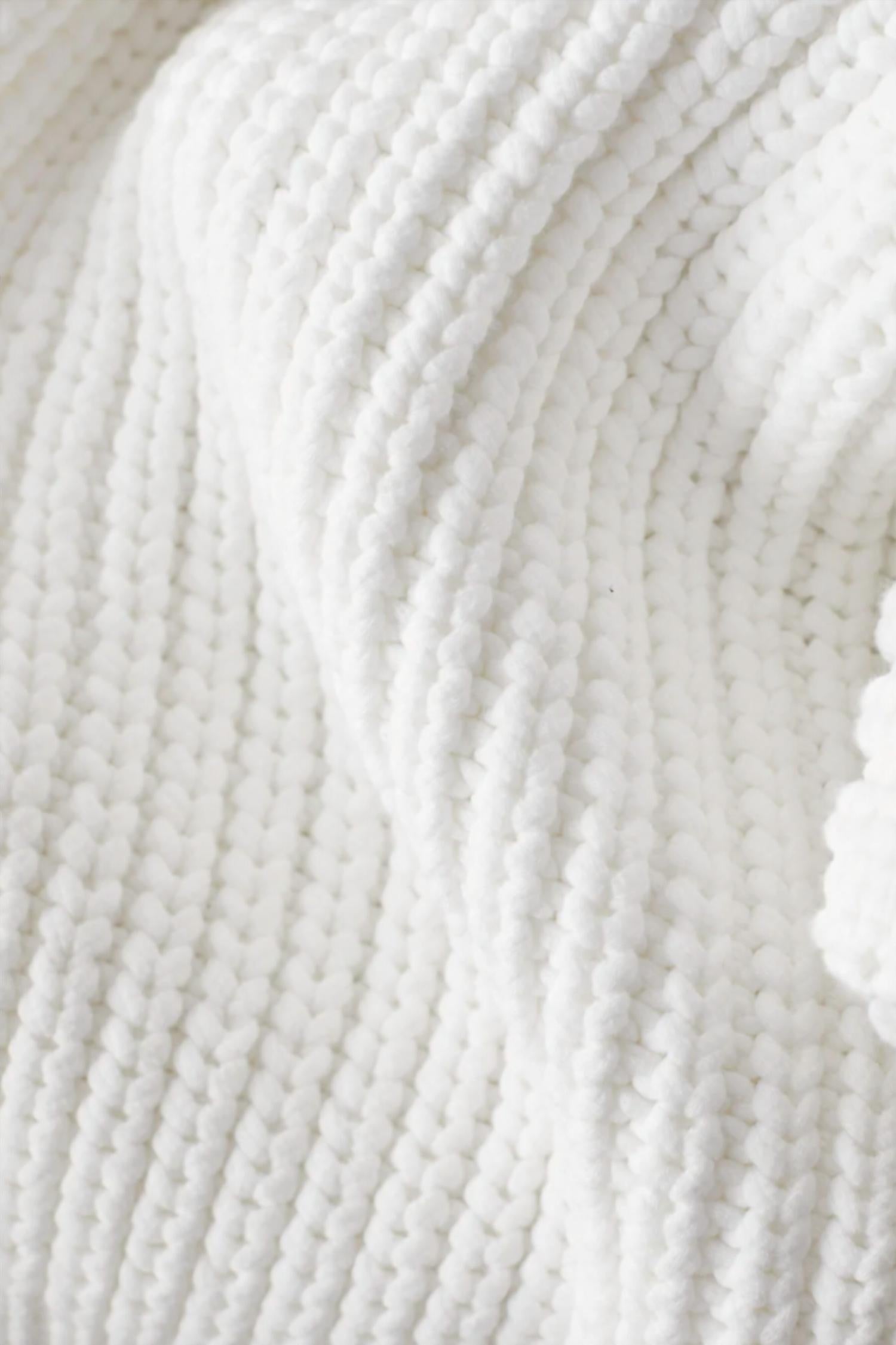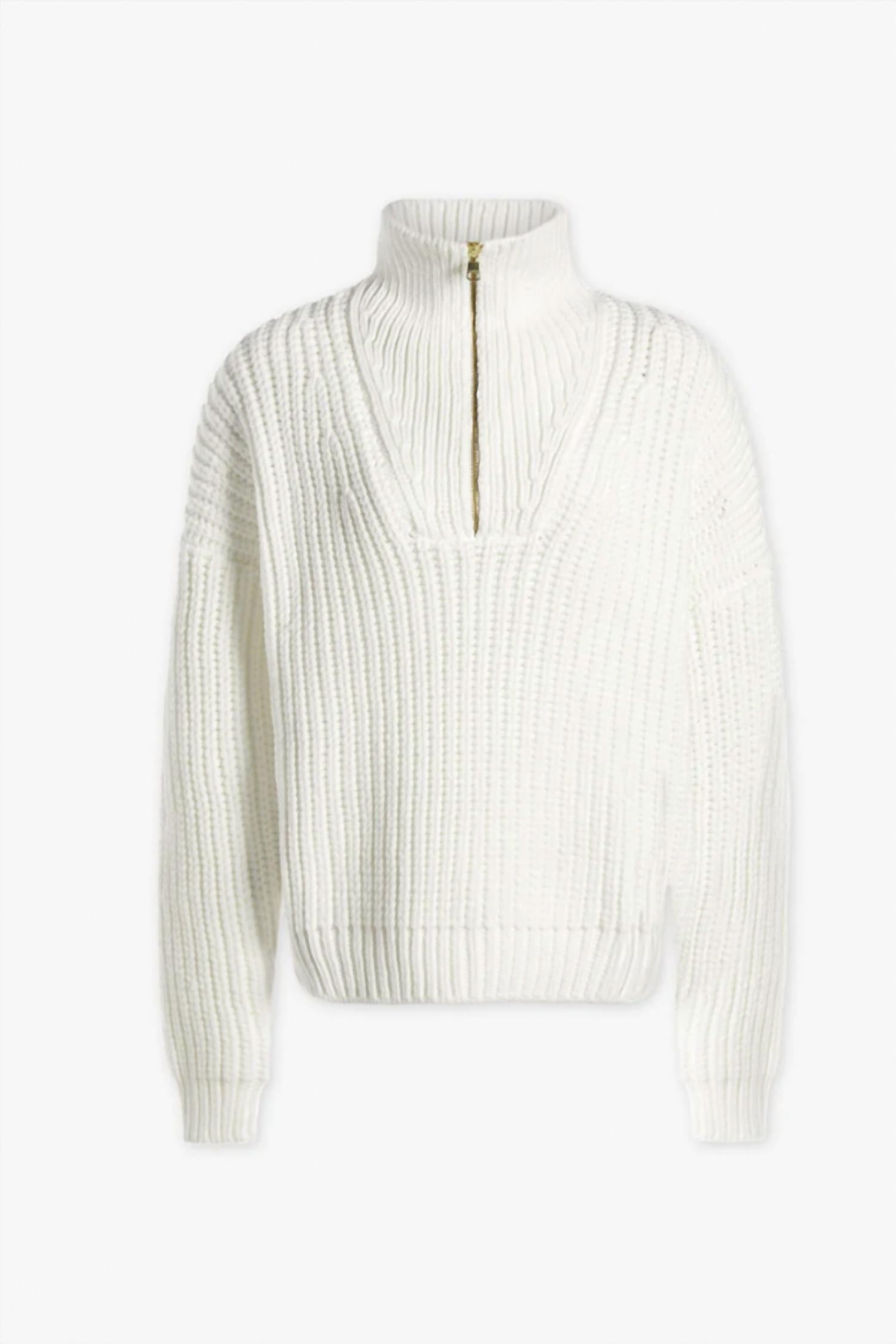 Fit to perfection and effortlessly chic. Heavyweight, chunky knit. High neckline and long sleeves. Partial zip placket. Ribbed knit. Dry clean.