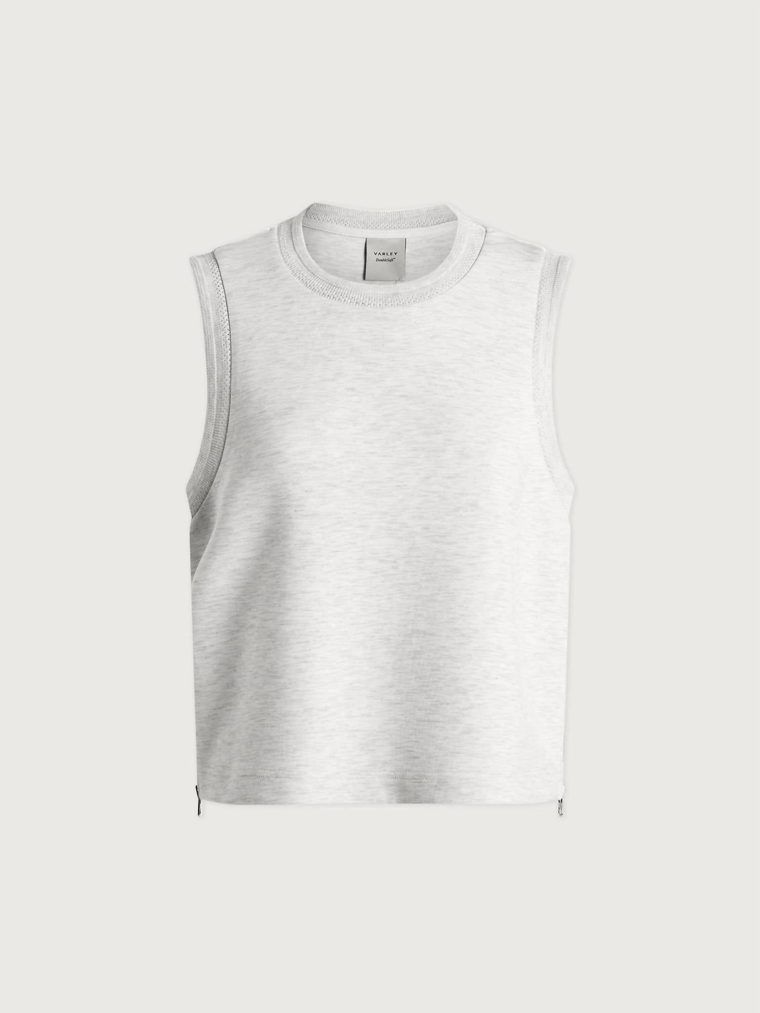 Fit, fabric and functionality. This tank top checks all the boxes. Experience ultimate comfort with the Shea Crop Tank Top by VARLEY, crafted for a minimalist style in a chic Ivory Marl. This sleeveless tank is made from luxurious DoubleSoft® fabric, featuring a solid pattern and a classic crewneck adorned with intricate pointelle trims. Composition: 81% Viscose, 15% Polyester, 4% Elastane. Closure: Pull-on. Care: Machine wash cool, lay flat to dry, and cool iron if necessary. Perfect for a vacation season look, pair it with matching DoubleSoft® shorts for a complete ensemble.