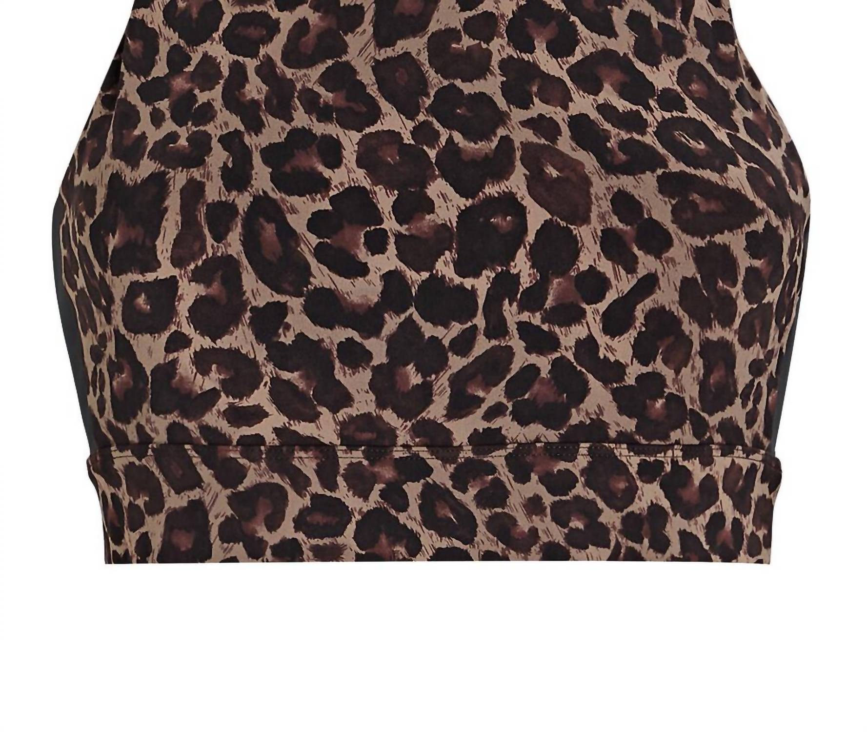Crafted along a cut-out racerback, sports bra is a sleek high neck style in their stretch leopard spotted neoprene. Pull-over style. Fabric: 70% Polyamide, 30% Elastane. Machine wash. Model is 5'10" and wearing size S.