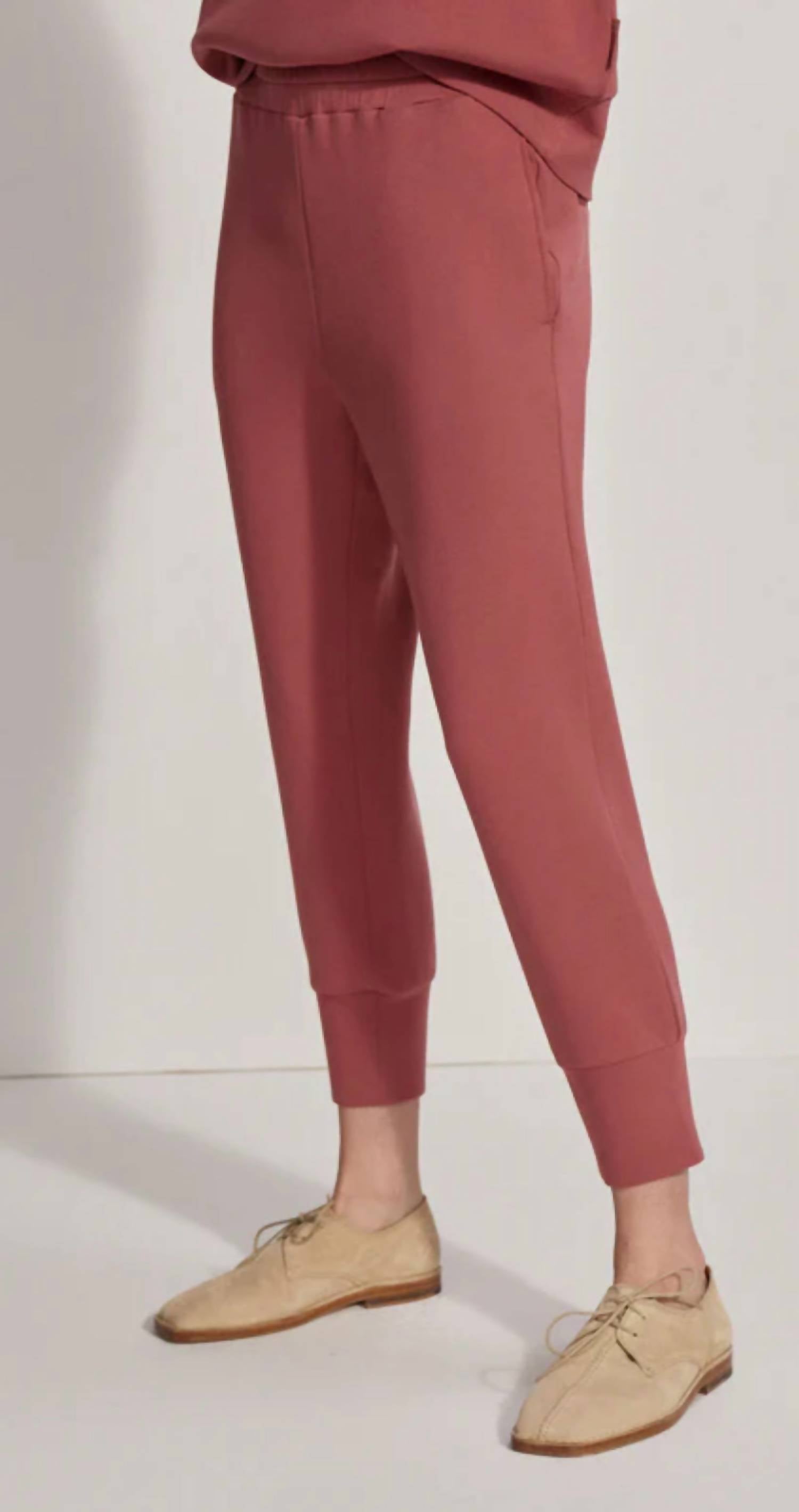 Pair these with your favorite sneakers for an effortlessly cool look. Introducing the Slim Cuff Pant by VARLEY in the elegant shade of Withered Rose, designed for the modern woman seeking comfort and sophistication. These track pants feature a high-rise waist with a pull-on design and a comfortable elasticated waistband with an internal drawcord for a personalized fit. The slim comfort fit and skinny leg style flatter your figure, while the solid pattern and cuffed hem add a touch of elegance. Perfect for activewear, these pants come with practical side and back pockets to keep your essentials close at hand.