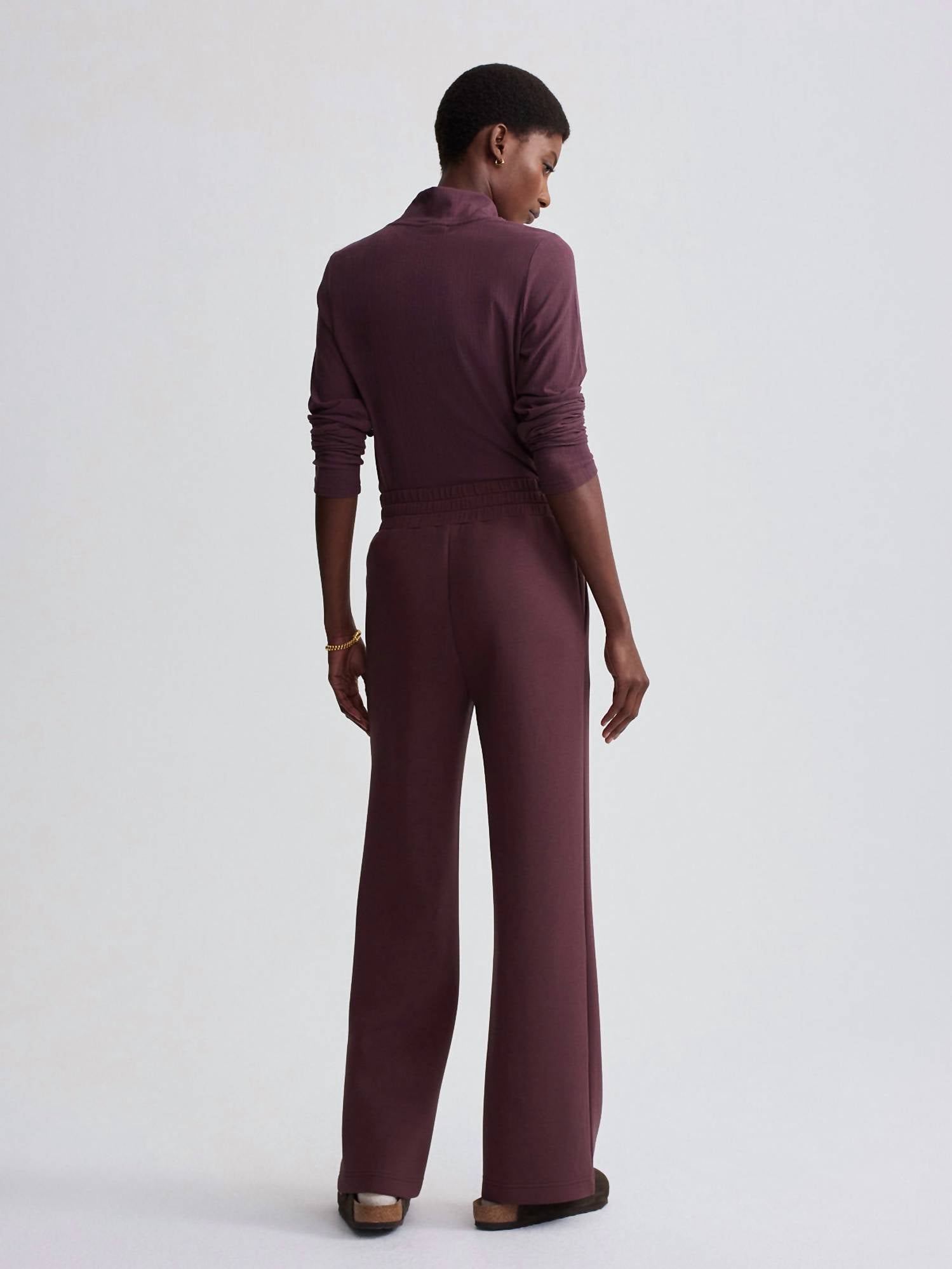 Introducing the Wide Leg Pant by VARLEY, a stylish choice in Deep Mahogany for your summer wardrobe. Crafted from a luxurious viscose blend, these pants offer a relaxed fit with a high-rise waist and wide leg style. Featuring a comfortable pull-on closure, these solid minimalist pants have an inseam of 30 inches and a rise of 11.417 inches. Perfect for vacation wear, care instructions include machine wash and laying flat to dry.