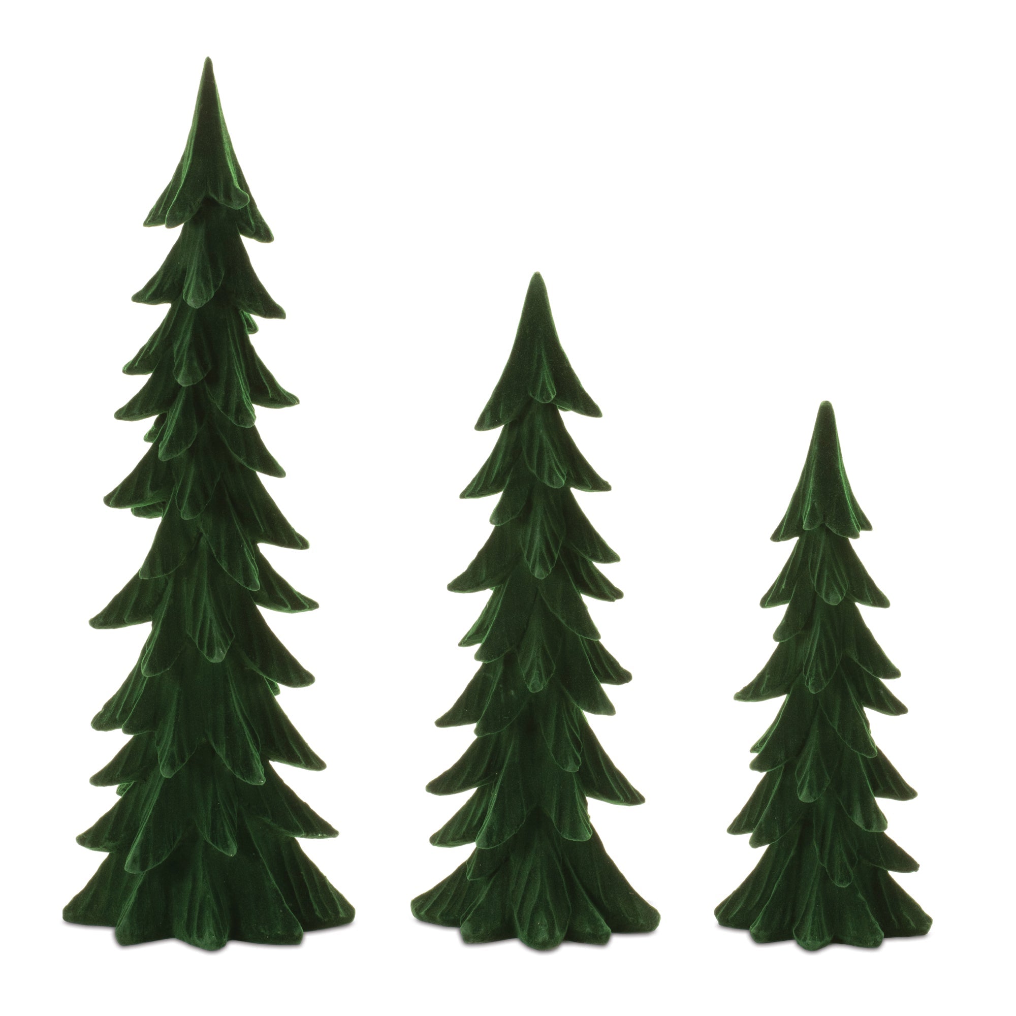 Bring a touch of luxury and warmth to your holiday decor with this Velvet Pine Tree Set. Featuring a deep emerald green hue and a modern velvet finish, these trees offer a sophisticated yet rustic charm to any festive display. The classic pine tree silhouette makes them a timeless accent for your tabletop, shelf, or mantle, perfect alongside seasonal floral arrangements, holiday deer, or Santa figurines. Sold in a set of three assorted sizes, they add depth and elegance to your Christmas decorations.