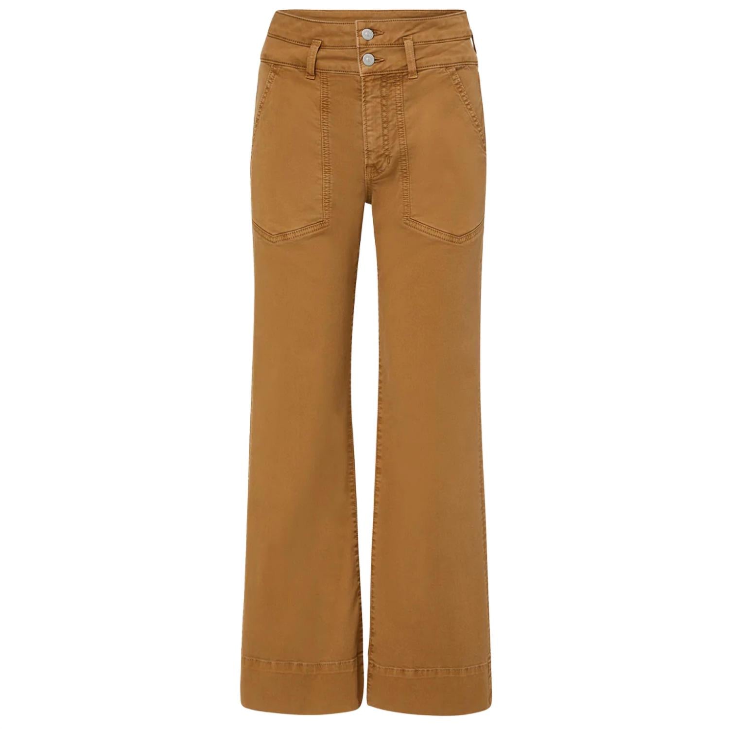 Veronica Beard Hilde Patch-Pocket Pant Cotton, Spandex in Ochre Wide Leg Pants Signature Stretch Cotton Elongated Waistband with Double-Button Closure Oversized Patch Pockets Rise 12" Inseam 28" Leg Opening 20" Machine Wash Cold Inside Out Made in Los Angeles, CA