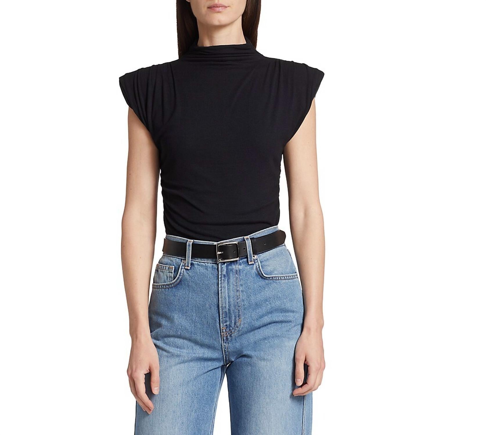 The perfect tank top for those warmer weather seasons. This top features cap sleeves and a chic mockneck style. Crafted from a luxurious cotton and knit blend with Modal, it offers a comfortable and refined fit. This pull-on top requires dry cleaning.