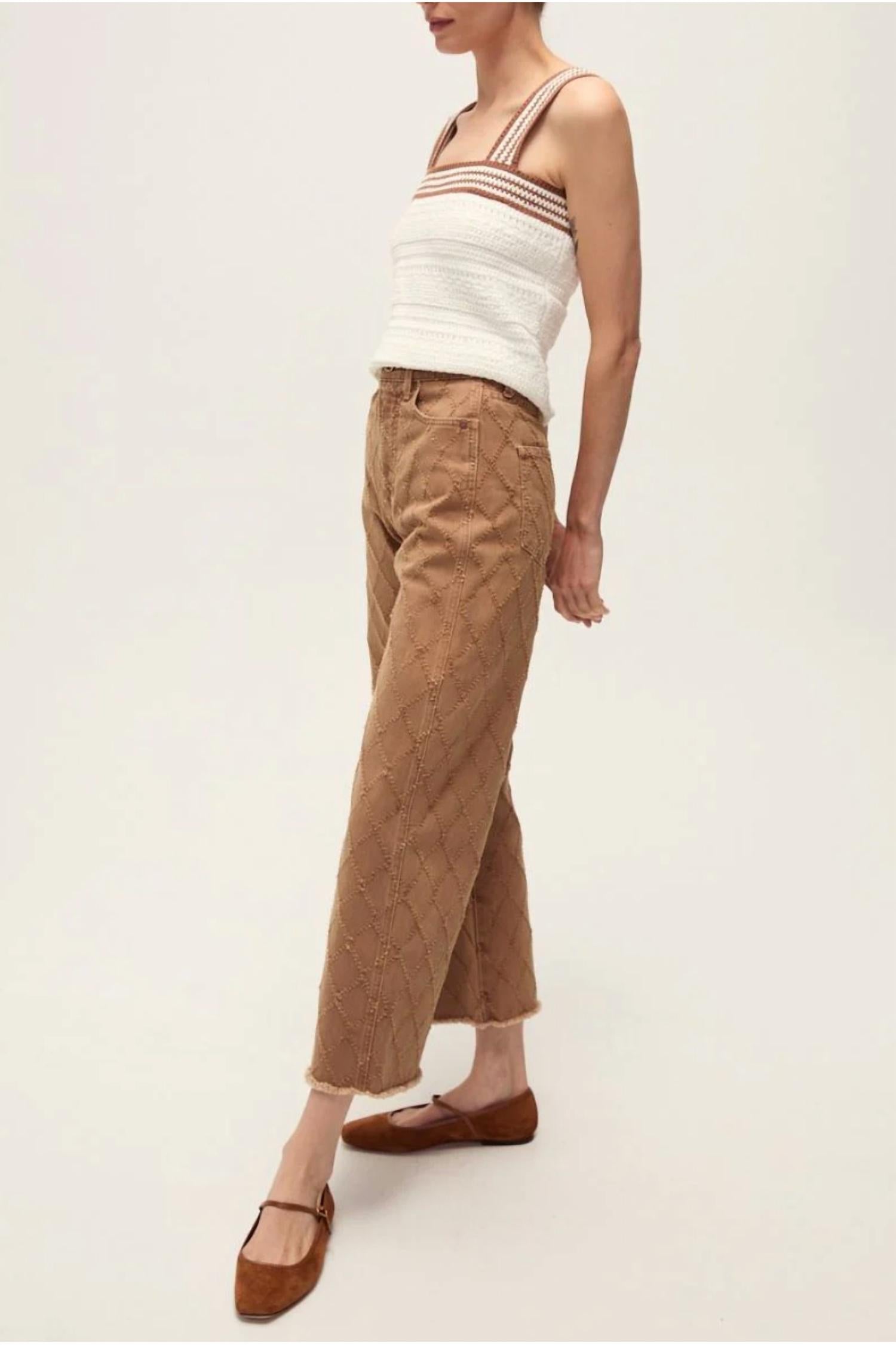Stay on-trend and showcase your impeccable taste with these adaptable and stylish cropped pants. The perfect length to wear with your favorite mules. You'll love the fit! Elevate your style with Veronica Beard's Taylor Cropped High Rise Jeans, perfect for a chic spring look. These denim jeans feature a high rise and wide leg style, enhanced by a unique lattice texture in a stunning Hazelnut Stone color. Designed with a slim fit and practical pockets, they include a convenient zip closure for easy wear. Care is simple with machine washing and laying flat to dry.