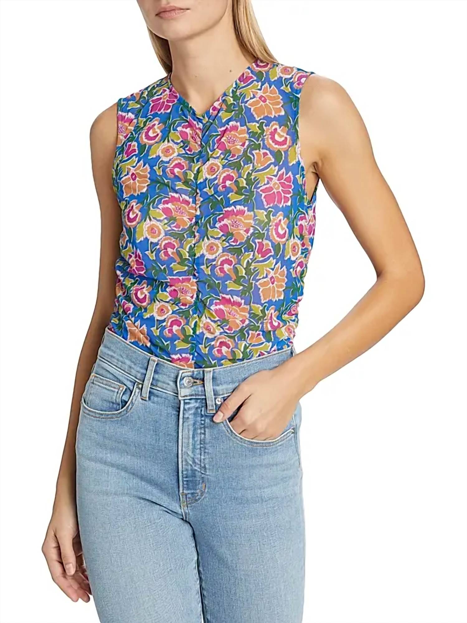 This classic tank top is perfect for layering and cute enough to wear on its own. Introducing the Tazmin Floral Top by Veronica Beard, a must-have for any Spring wardrobe with its Boho Chic style. This sleeveless tank top is crafted from a luxurious blend of 82% Nylon/18% Spandex, offering both comfort and style in a Sarong Floral Print. Measuring at a garment length of 20.5 inches, this piece features a V-neck and a convenient pull-on closure. Made with care and precision, it is important to note that this product is imported and requires dry cleaning only to maintain its vibrant pattern.