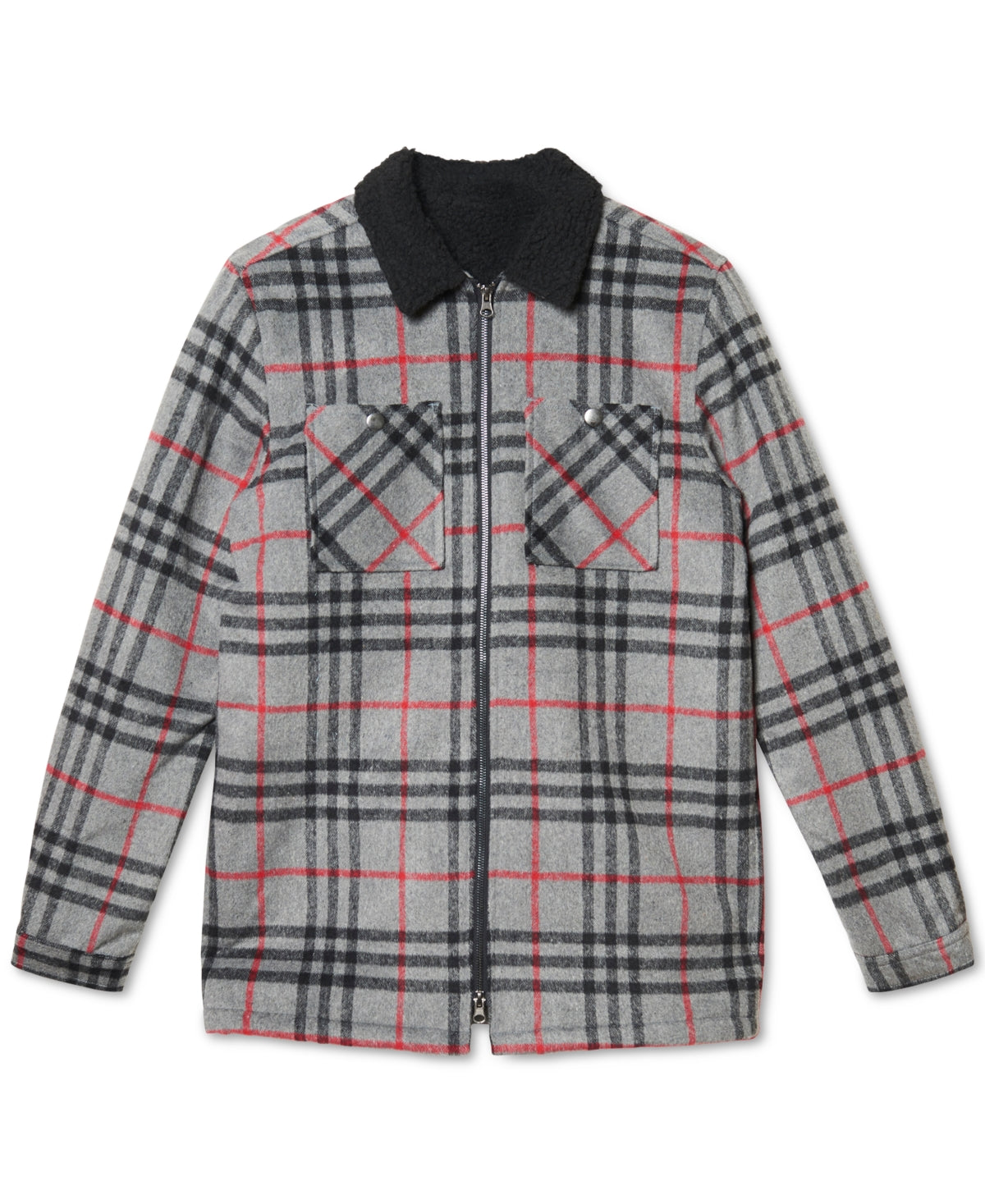 Versace Men's Liam Plaid Fleece Lined Full Zip Shirt Jacket Gray Size S/M