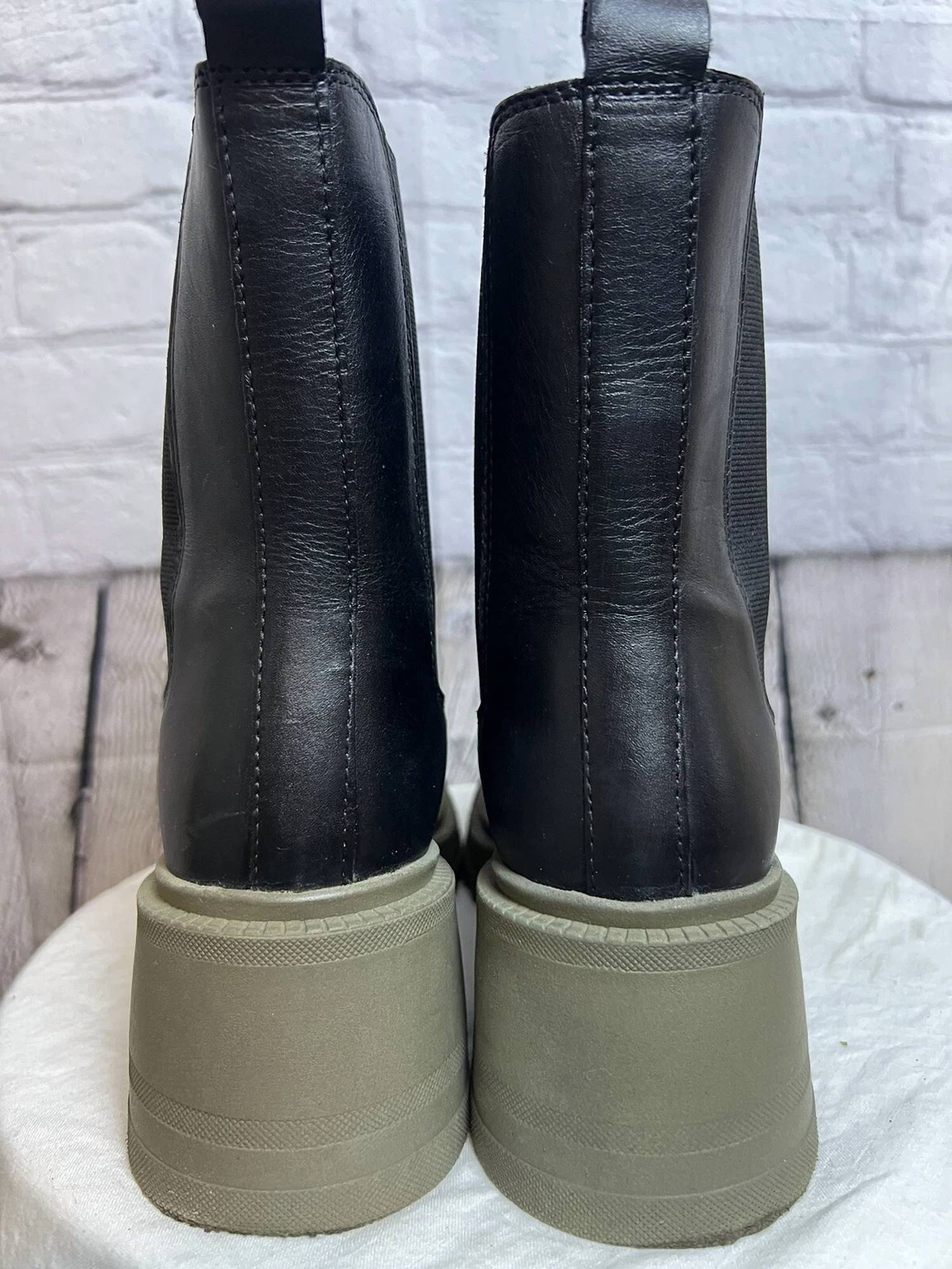 Say hello to the perfect, most versatile boot. The ankle height makes this style easily transition from day to night. Wear them with your favorite skinny jeans and tee for a more laid back look, or pair them with your favorite mini dress and jacket for a night out on the town. Step into sleek sophistication with the Women's Anikaaa Block Heel by Vince Camuto, a must-have for ankle boot enthusiasts. These black ankle booties boast a stylish block heel, a 1.25" platform for added height, and a comfortable 6" shaft height with a 10" circumference. Designed with a leather upper, fabric lining, and durable TPR sole, these boots feature a soft square toe, elasticized gussets, and a convenient pull tab for easy wear. Enjoy mid-height elegance with a heel measuring 2.75", perfect for various occasions.
