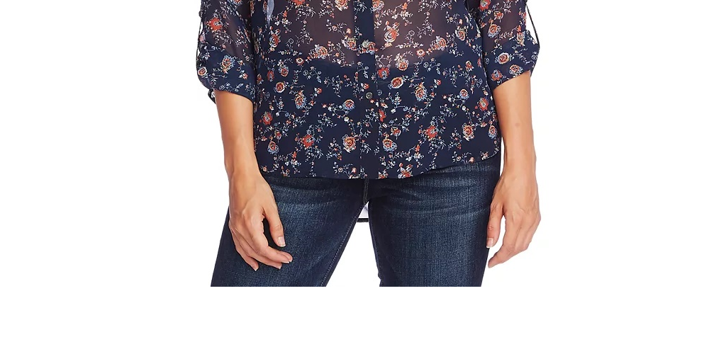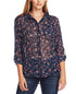 Vince Camuto Women's Ditsy Floral Shirred Shoulder Blouse Blue Size Medium