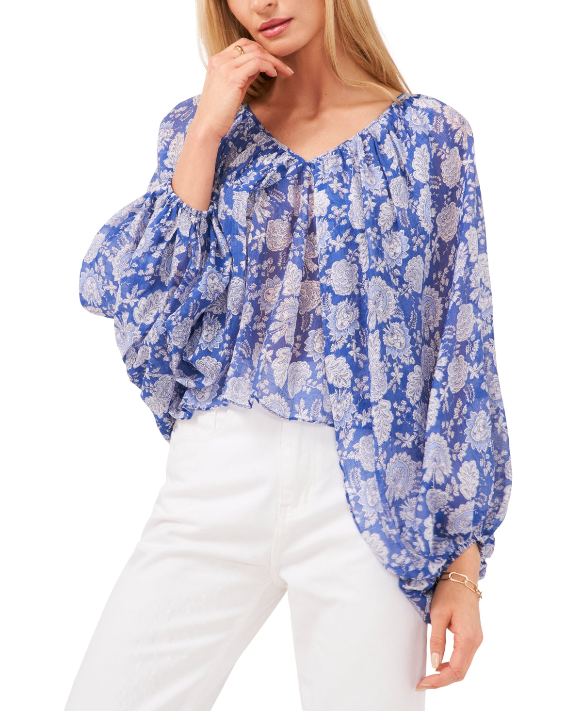 The style report has lots to say about statement sleeves and this flowery blouse beautifully delivers 23 12 length size Medium Vneck Long sleeves 70 rayon 30 nylon Machine wash tumble dry Imported