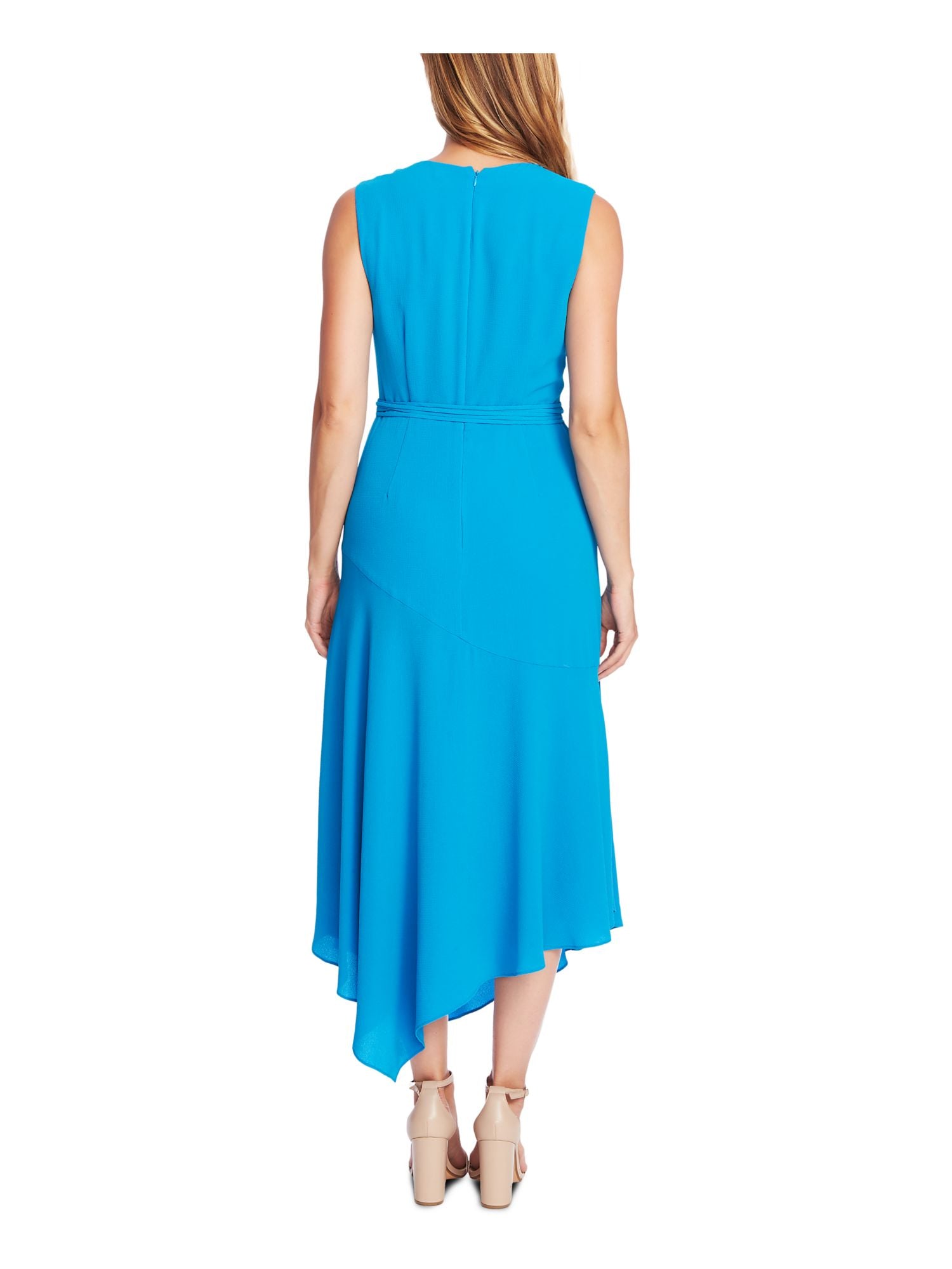 Vince Camuto Women's Zippered Belted Sleeveless V Neck MIDI Evening a Line Dress Blue Size 4