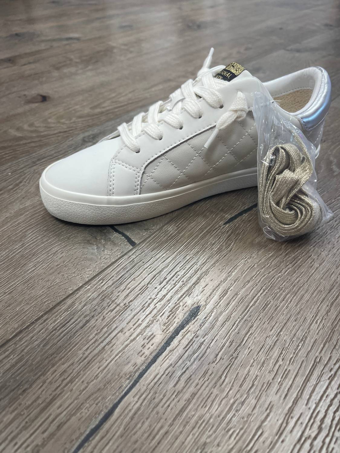 Cute, functional, and comfortable. These sneakers check all the boxes. Step up your sneaker collection with the Women's Flair 50 Sneakers by Vintage Havana. These standout kicks in white boast a synthetic upper, adorned with a gold star and quilted sides, perfect for adding a bold accent to your style. Complete with a round toe design and lightly cushioned footbed, they ensure comfort as well as style.