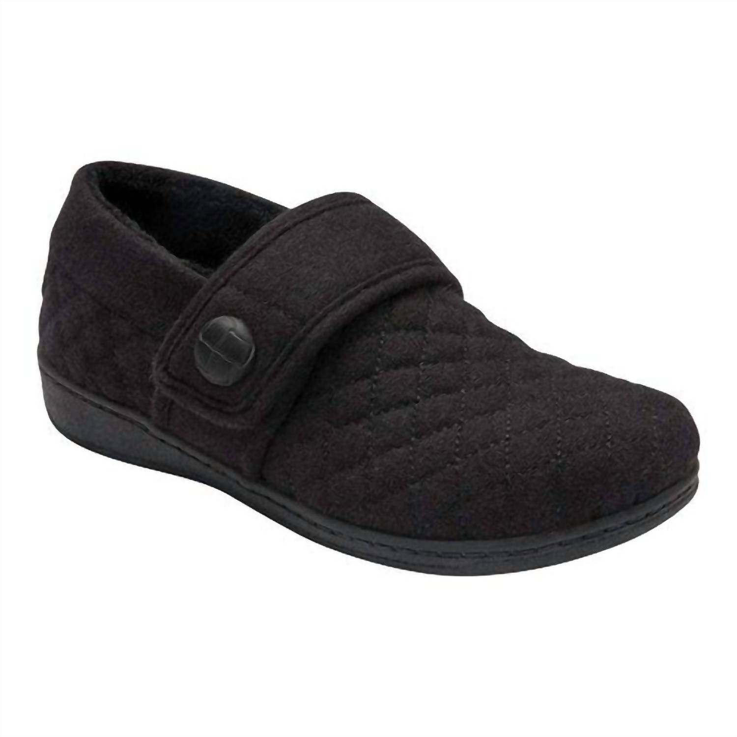 Slip into these, we promise you won't regret it. Jackie offers hook-and-loop closure with an elegant flannel upper and warm faux-fur lining. Offered in whole sizes only. Featuring the same tried and tested Vionic technology as our sandals. With Hook & Loop adjustment for secure fit. Upper: Textile. Footbed: Textile Covered EVA. Outsole: Rubber. Heel Height: 1.30"