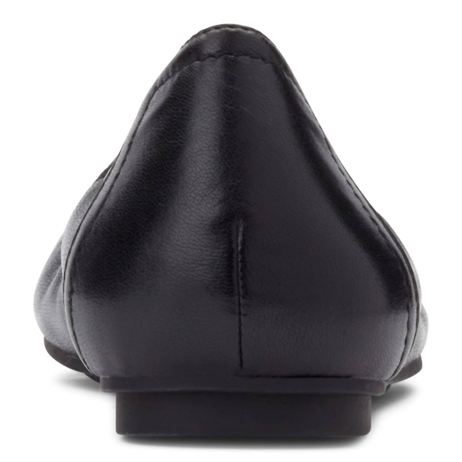 A preppy yet feminine take on the classic loafer. Experience the elegance and comfort of the Women's Caroll Ballet Flat Shoes by VIONIC, now in a classic black shade. Featuring a soft elastic topline and delicate stitching, these flats are crafted with leather or printed leather uppers. Designed with a biomechanically supportive footbed, it includes a removable microfiber-wrapped EVA and a TR outsole for ideal comfort and alignment. For care, use a dry cotton cloth to clean and ensure they dry naturally, keeping them away from direct heat. The flat heel with a round toe shape ensures a chic yet comfortable silhouette, perfect for everyday wear.