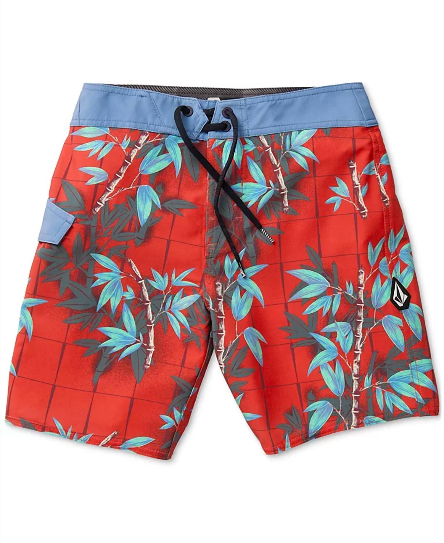 Dive into style with the Big Boys Lido Printed Mod Swim Trunks by Volcom, crafted to offer both fashion and functionality in striking Flash Red. Featuring a Cinch Fly closure and a side pocket with a flap on the right, these swim trunks ensure convenience and comfort. The four-way stretch and 94% Polyester, 6% Elastane blend offer flexibility and durability, while the signature Volcom Stone patch adds a touch of authenticity. With a 16" outseam and 7" inseam for size 26, these trunks are machine washable for easy care, making them an ideal choice for active boys.