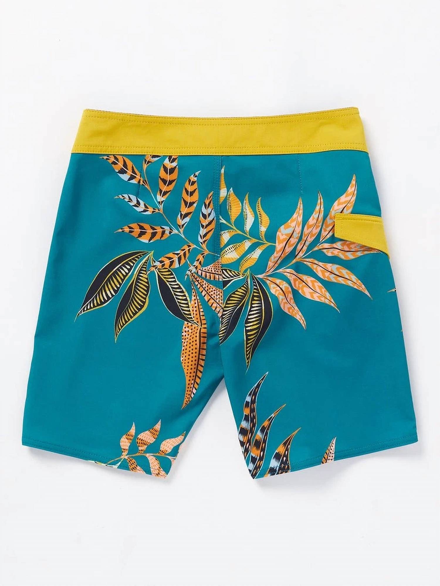 Meet the Big Boys Lido Printed Mod Swim Trunks by VOLCOM, a vibrant choice in Ocean Teal for young adventurers. These trunks are crafted from a flexible blend of 94% polyester and 6% elastane and feature an outseam of 16 inches and an inseam of 7 inches in Size 26. They include a side piped pocket and showcase the Volcom Stone Signature Badge, adding a touch of style. Closure: Cinch-Fly Technology. Care: Machine wash.