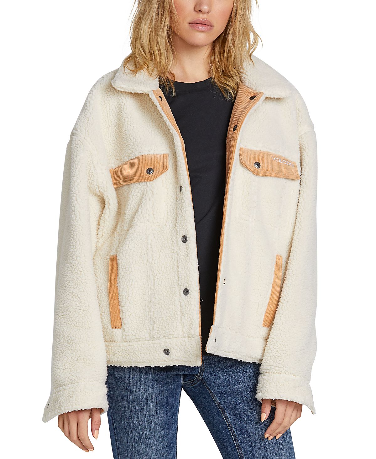Tackle the elements in Volcom's essential corduroy jacket| with a reversible faux-sherpa lined interior.| Collared front; Snap front closures| Faux-fur lining| Hits at hip; approx. 26 long| Patch and slit pockets at hips| Cotton; lining; polyester
