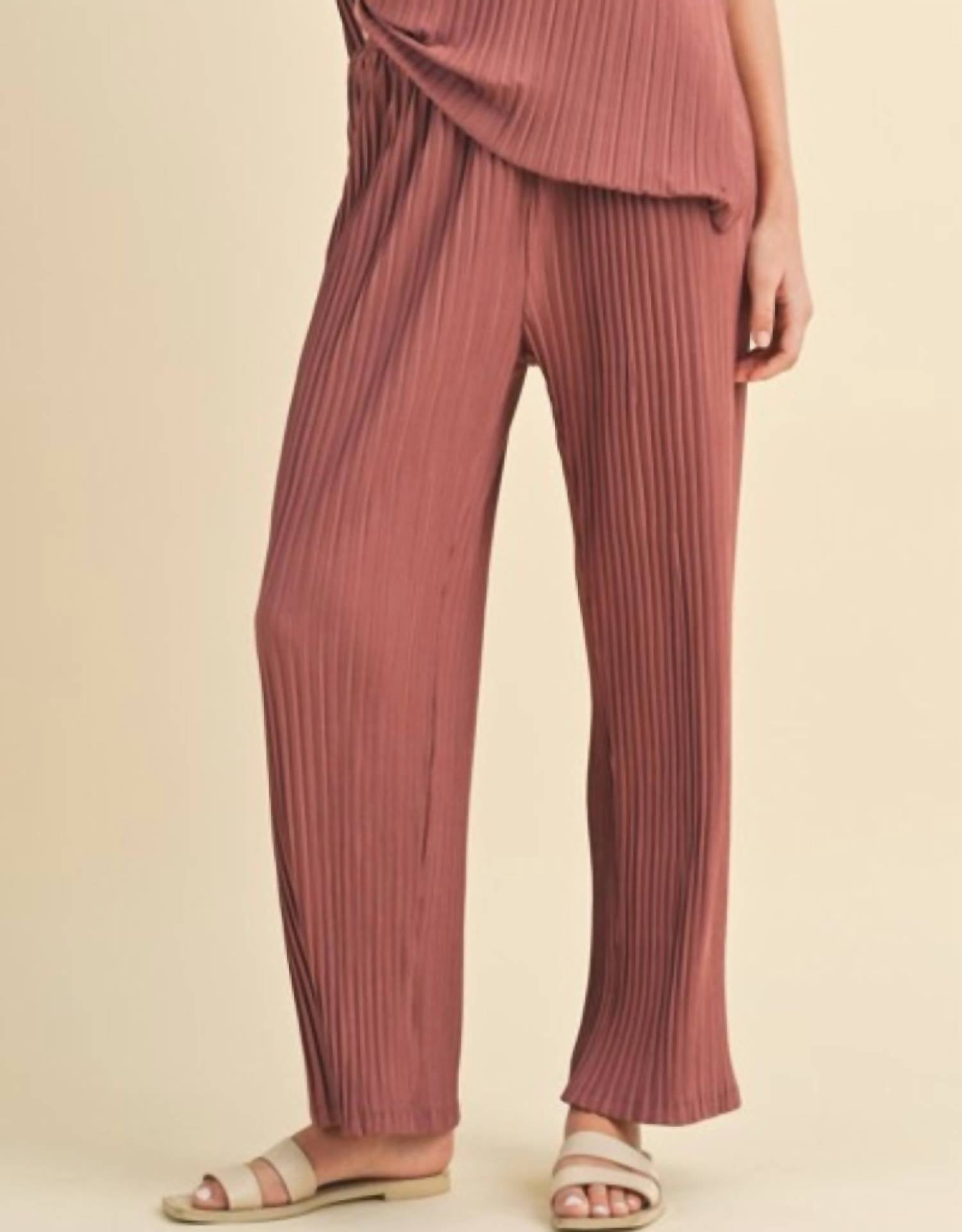 A perfectly tailored straight leg that you'll want in every color! Introducing the Women's Pleated Elastic Waist Pant by WISHLIST in a rich Sienna hue, an embodiment of comfort and style. With a high-rise fit and relaxed straight-leg silhouette, these pants are perfect for any occasion. Crafted from a blend of 95% polyester and 5% spandex, they offer both durability and stretch. Inseam measures 28.25 inches with a convenient pull-on closure. Care is straightforward with hand washing and laying flat to dry.