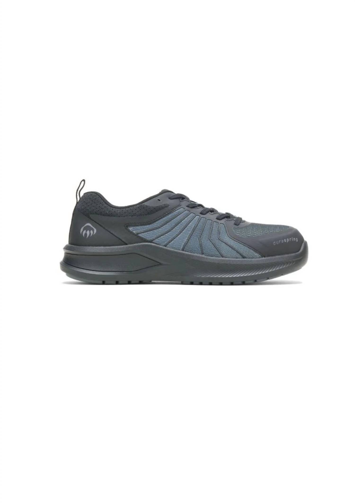 Discover the Men's Durashocks Composite Toe Work Sneakers by Wolverine, designed with performance and comfort in mind. Crafted with a breathable stretch mesh upper and a moisture-wicking mesh lining, these sneakers ensure lasting comfort. They feature a removable DuraShocks® PU footbed, DuraSpring™ Low Density PU midsole, and a Wolverine DuraShocks® Dual Suspension Pads outsole for superior support. With a CarbonMAX® Composite Toe meeting ASTM F2413-18 M I/75 C/75 EH standards and a low heel height, these sneakers are perfect for tough work environments.