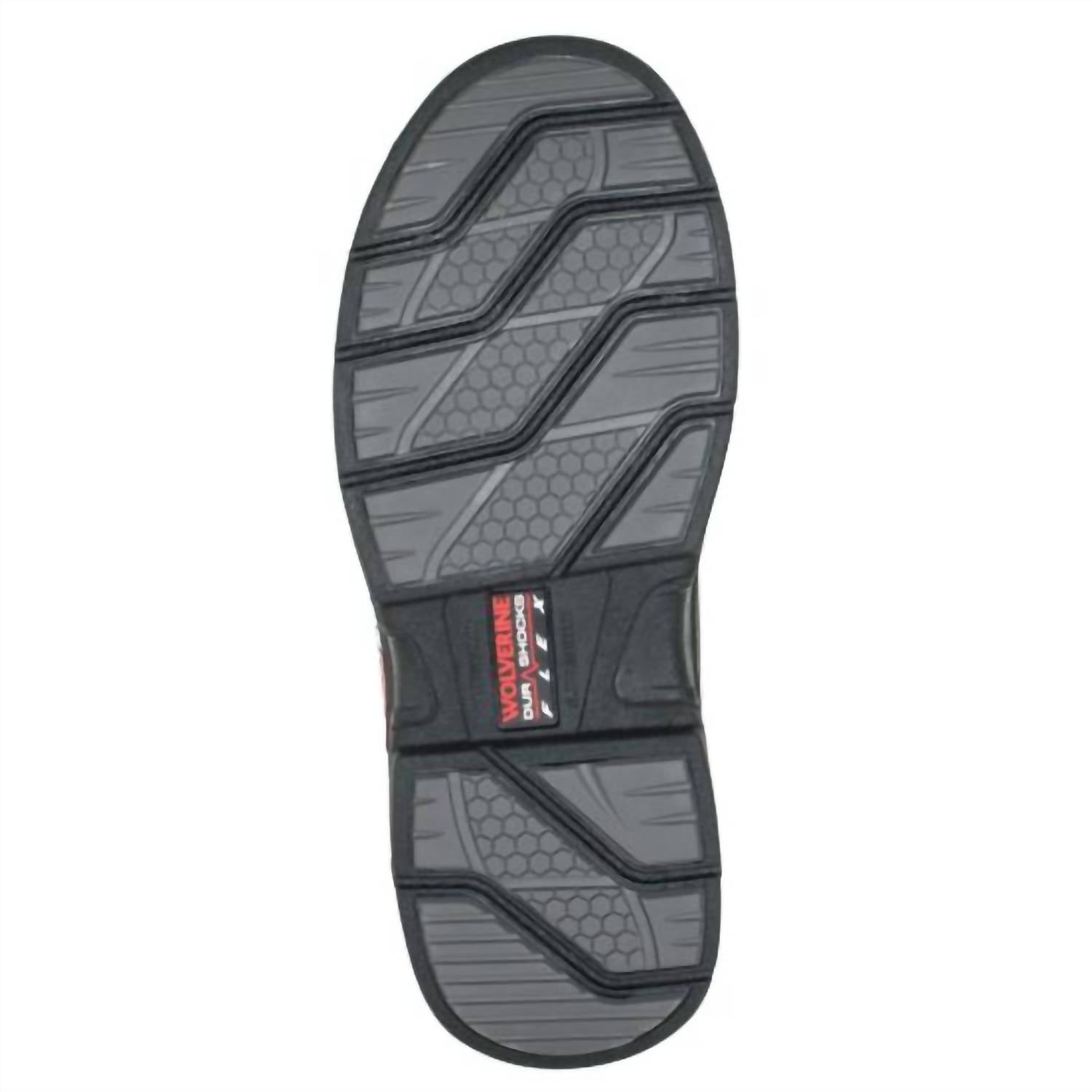 Step into confidence with the Men's Raider Durashock 6" Boot by Wolverine, offered in a rich Chocolate Chip hue. This boot features a premium waterproof full-grain leather construction, complemented by a breathable waterproof membrane and moisture-wicking mesh lining to keep your feet dry. Enjoy the support of a CarbonMax composite-toe and a removable dual density footbed, all built on a durable rubber lug with the Wolverine DuraShocks® Flex outsole and a nylon shank for added stability.