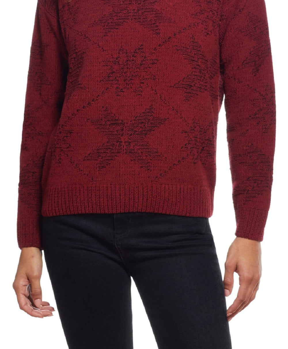 This super cozy chenille drop shoulder mock neck has a subtle all over snowflake pattern that seems to be 'woven' into the fabric| Understated| but still festive|