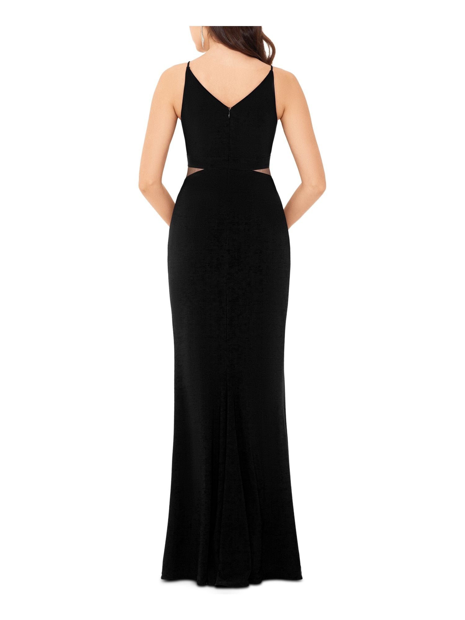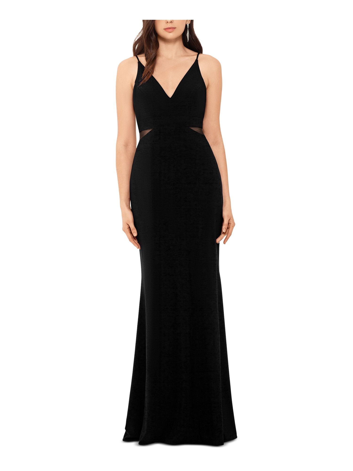 Xscape Womens Spaghetti Strap V Neck Full-Length Sheath Evening Dress Black Size 8