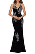 Xscape Women's Velvet Floral Embroidered Gown Black Size 10