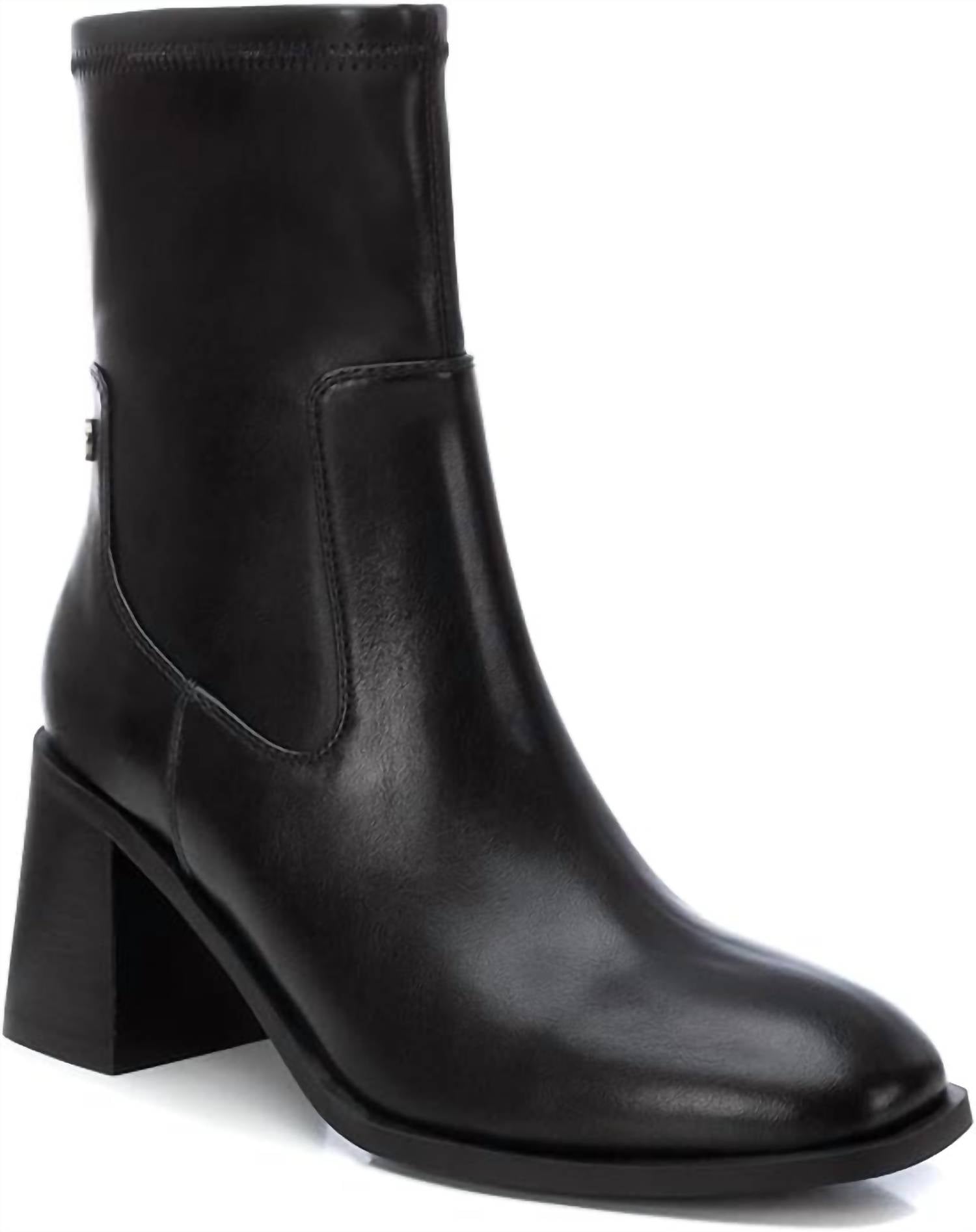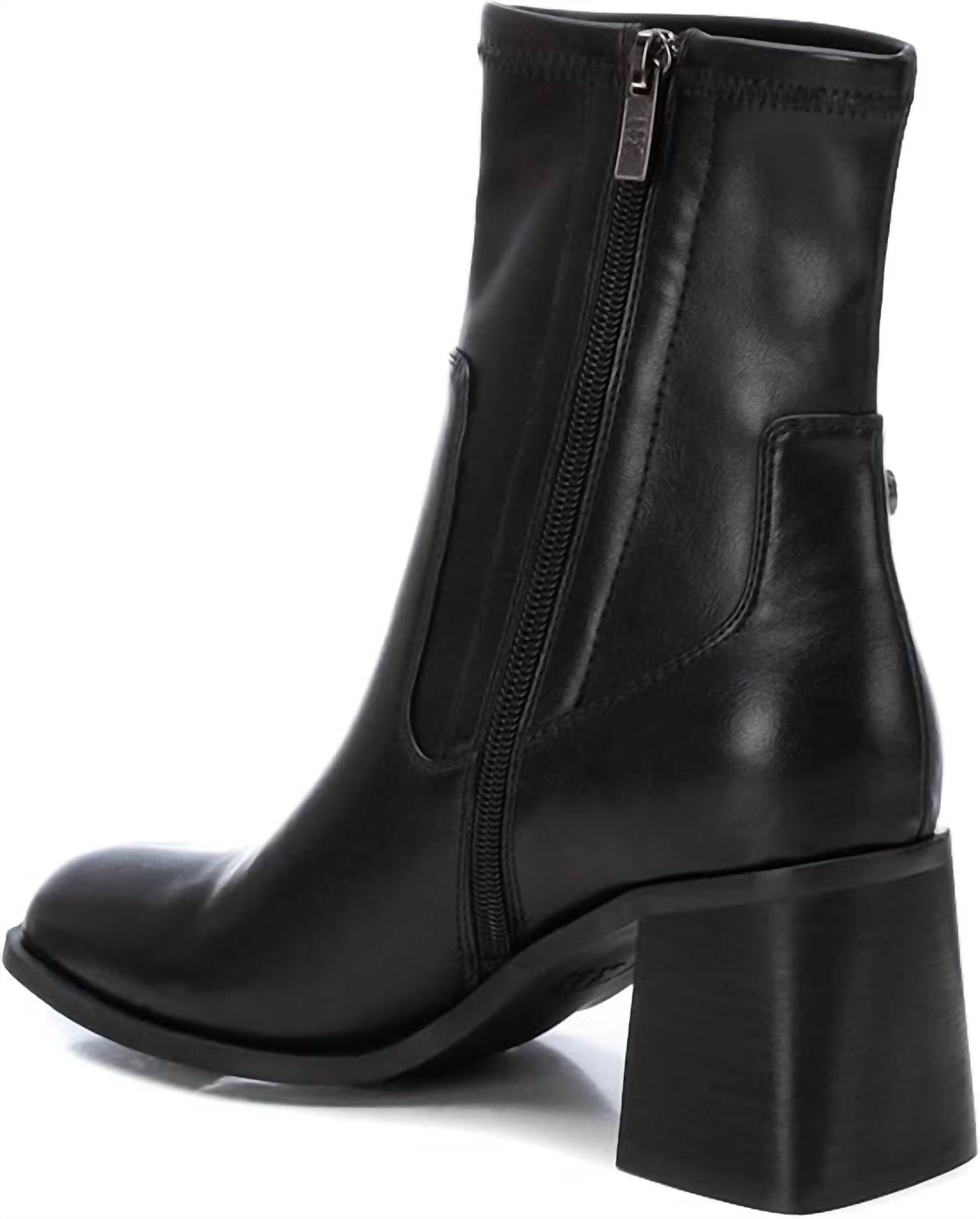 Say hello to the perfect, most versatile boot. The ankle height makes this style easily transition from day to night. Wear them with your favorite skinny jeans and tee for a more laid back look, or pair them with your favorite mini dress and jacket for a night out on the town.This Ankle Bootie is crafted from premium faux leather with a 2.75-inch block heel and side zipper for easy wear. Its non-slip rubber sole and rounded toe provide both style and comfort, making it a versatile wardrobe essential.