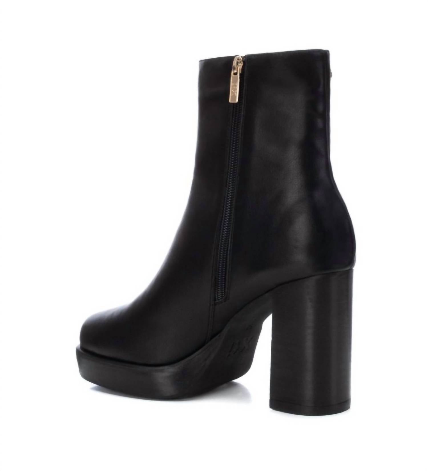 A stylish boot with a comfortable fit and the perfect amount of height. These classic boots are the perfect addition to any outfit and can be worn season after season. Made in material that imitates leather. Side zip closure. Wide heel of 9 cm with front platform for comfort. Lightweight non-slip rubber sole.