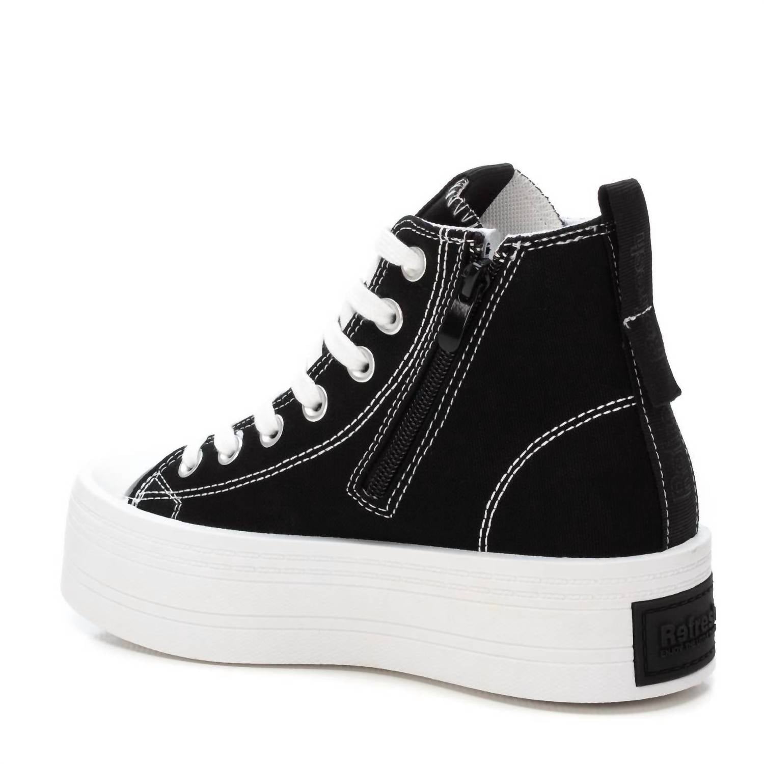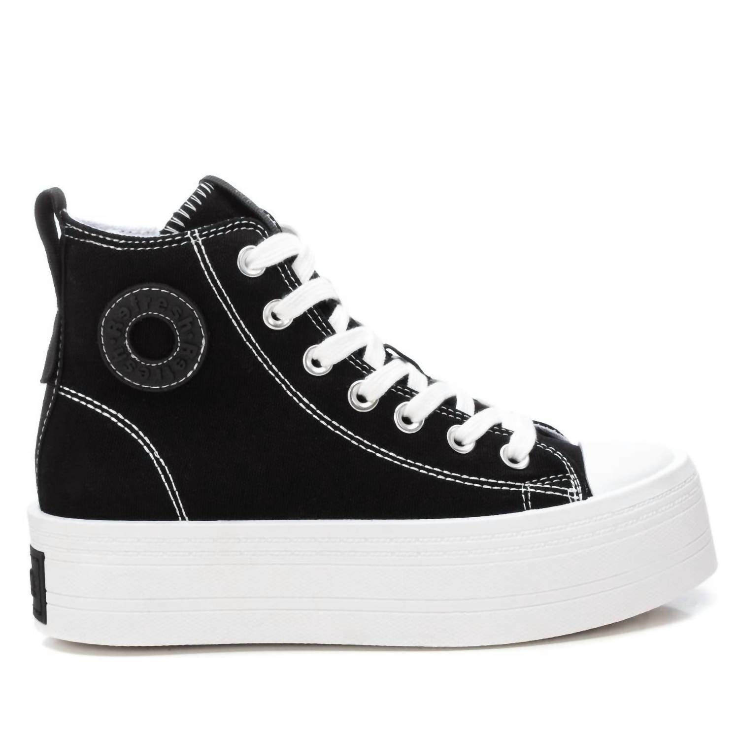 Cute, functional, and comfortable. These sneakers check all the boxes. Step out in style with the Women's Canvas High Top Sneakers by Xti, offering a blend of fashion and comfort for any occasion. These black, bootie-style trainers are made of canvas and feature an interior zip fastening with adjustable laces for a secure fit. Designed with a platform heel and a round toe shape, they boast a 4 cm sole volume with a non-slip rubber sole, enhancing both style and practicality. Perfect for adding a trendy touch to your outfit, these sneakers will keep you looking and feeling your best all day.