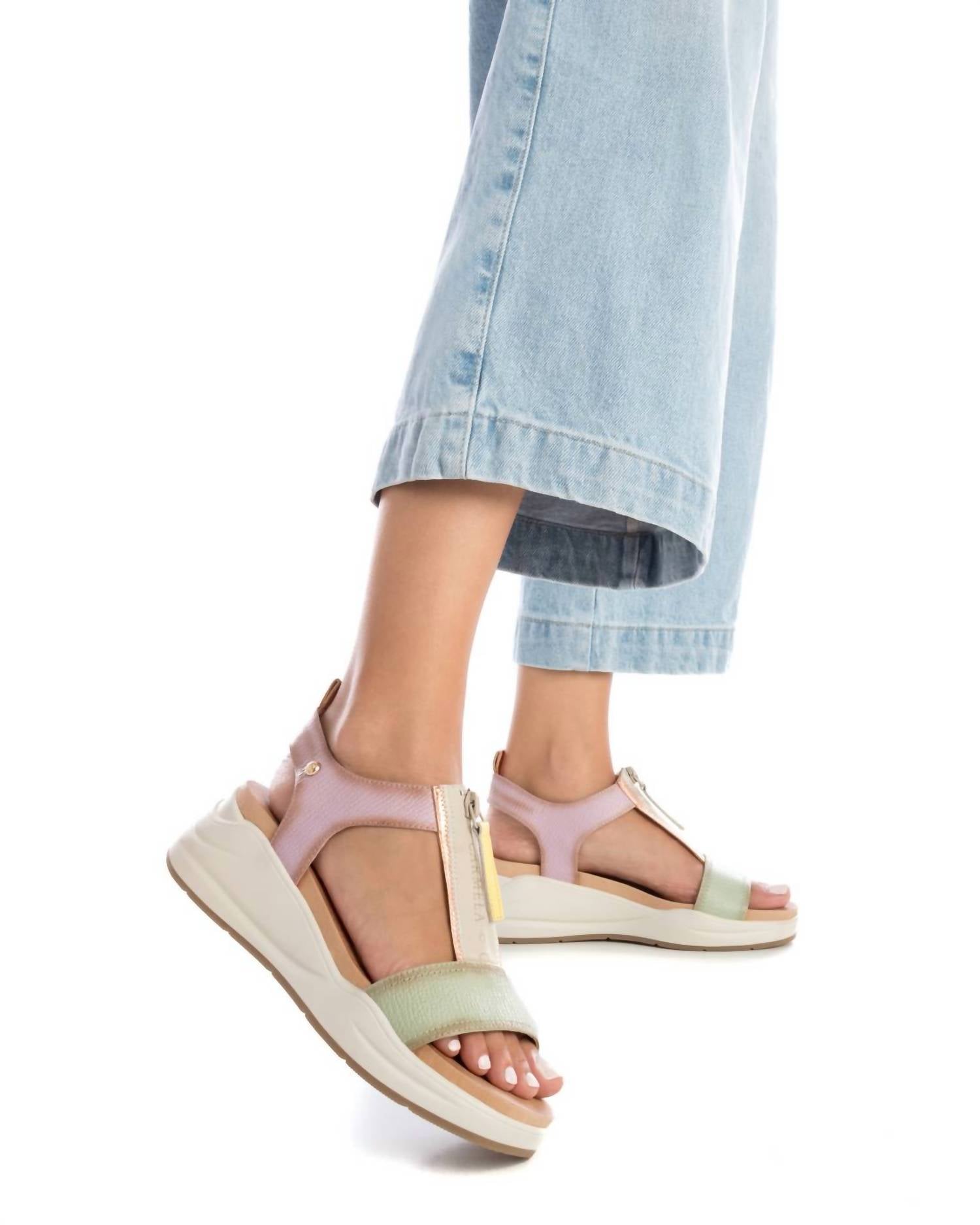 Flowy dresses, cropped pants, and even jumpsuits... this sandal works with them all! Introducing the Carmela Sandals by Xti, a chic footwear option for women that effortlessly combines style and comfort. With an open toe and wedge heel, these aqua sandals are perfect for any occasion, from work to a night out with friends. Crafted to provide all-day comfort while maintaining a trendy look. Ideal for adding a splash of color to any outfit, these sandals are a must-have in your collection.