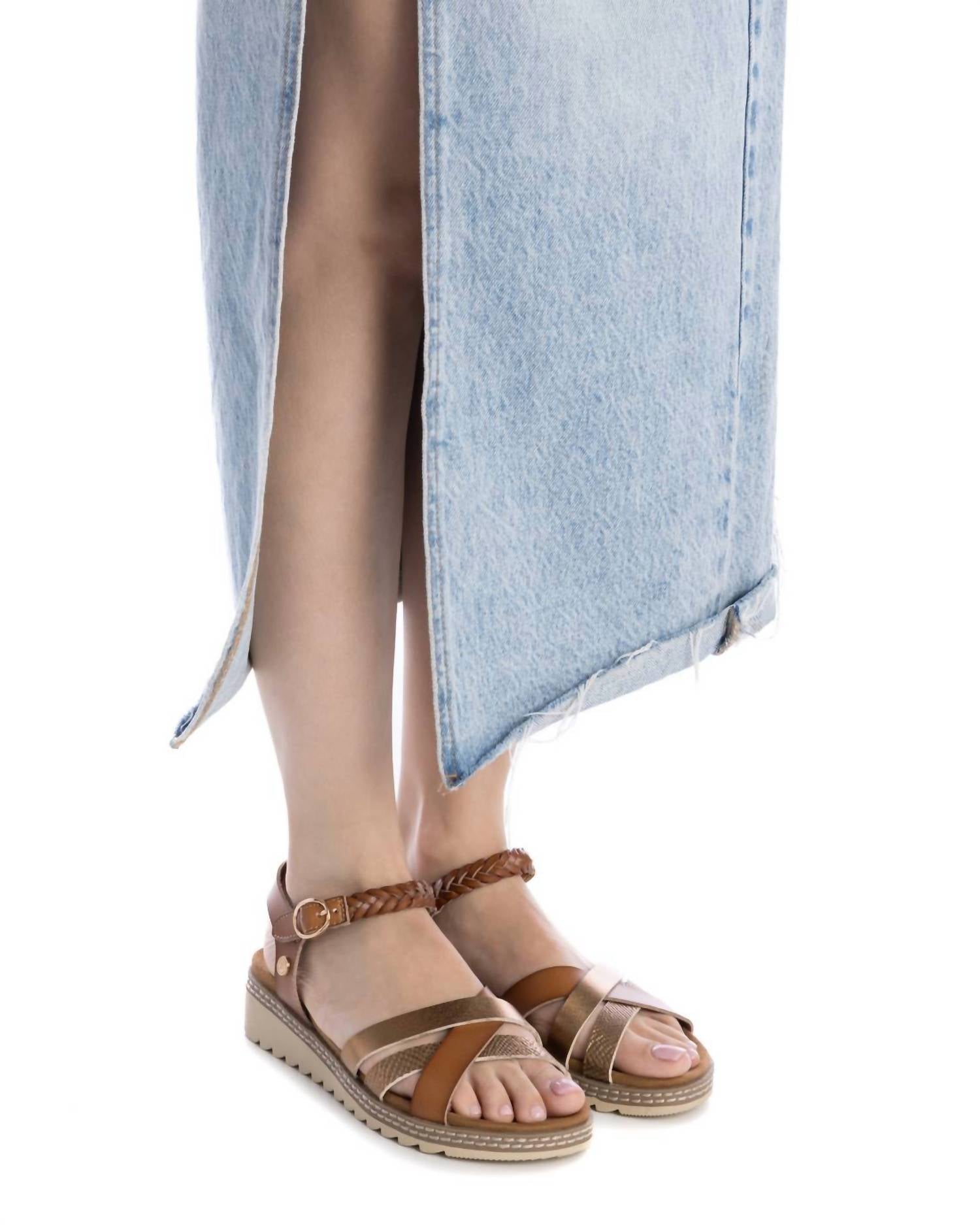 This sandal will take you from brunch to dinner and everything in between. Discover the perfect blend of fashion and comfort with Xti Women's Casual Sandals. These sandals feature a casual design with a low wedge heel and a round toe, ensuring style without sacrificing ease of wear. The lightweight anti-slip outsole provides excellent grip, making them perfect for both city strolls and beach outings. Complemented with a Comfortech insole, these sandals are crafted from high-quality materials to keep you looking chic and feeling great all day.