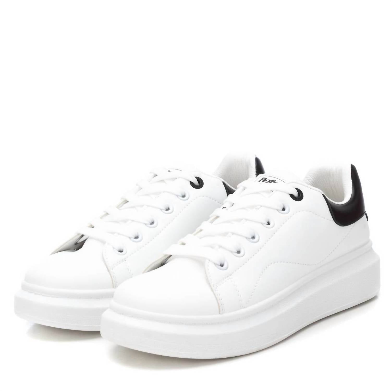 Cute, functional, and comfortable. These sneakers check all the boxes. Elevate your casual style with Xti Women's Casual Sneakers, crafted in chic faux leather. These trainers from the Refresh brand feature adjustable lace closures and a sleek round toe design for a perfect fit. The sneakers boast a lightweight, anti-slip rubber outsole and removable Comfortech insoles, ensuring all-day comfort. Certified vegan by PETA, these stylish sneakers are a sophisticated addition to your everyday wardrobe.