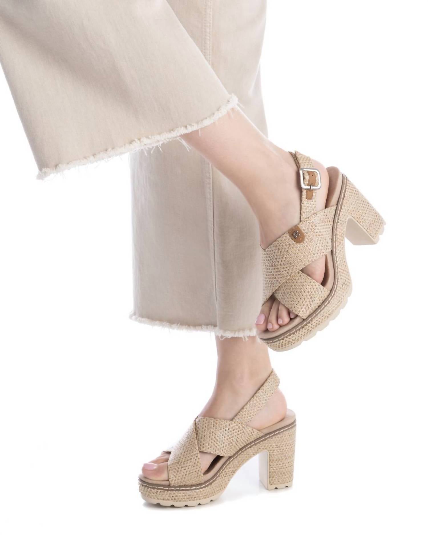 This sandal will take you from brunch to dinner and everything in between. Step into style with the Women's Heeled Sandals by Xti, expertly crafted for the modern woman. Showcasing a chic taupe nylon upper, these sandals feature a 3.25-inch block heel ideal for both day and night. The Comfortech insole and lightweight anti-slip outsole ensure superior comfort and stability. Made from high-quality materials, these sandals promise longevity and endless versatility with their casual design.