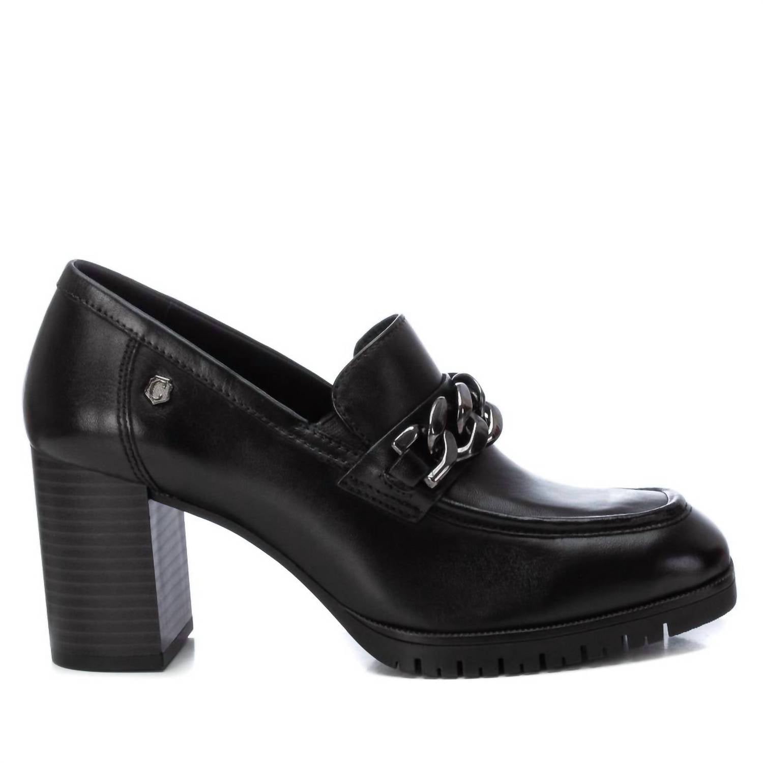 These boho chic moccasins are not only stylish, but they are so comfortable to wear. The perfect casual shoe for running errands around town or lounging around the house. Step into sophistication with Xti Women's Leather Moccasins in classic black. Crafted from high-quality leather, these moccasins offer a luxurious feel and outstanding durability. Featuring a squared toe shape and a stylish block heel measuring 3.14 inches, they ensure comfort and a fashionable edge. Elevate your look with the decorative metal detail and enjoy a blend of timeless style and modern flair.