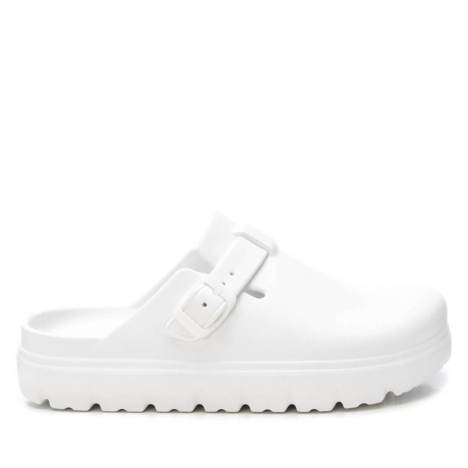 A trend that everyone is loving and this style might just be our favorite. Step into ultimate comfort and style with the Women's Rubber Clogs by Xti, meticulously crafted for any occasion. Designed with a round toe and flat heel, these clogs feature a durable rubber composition, ensuring a non-slip experience ideal for summer adventures. Proudly PETA-certified vegan, these shoes are made with care for both the environment and your feet.