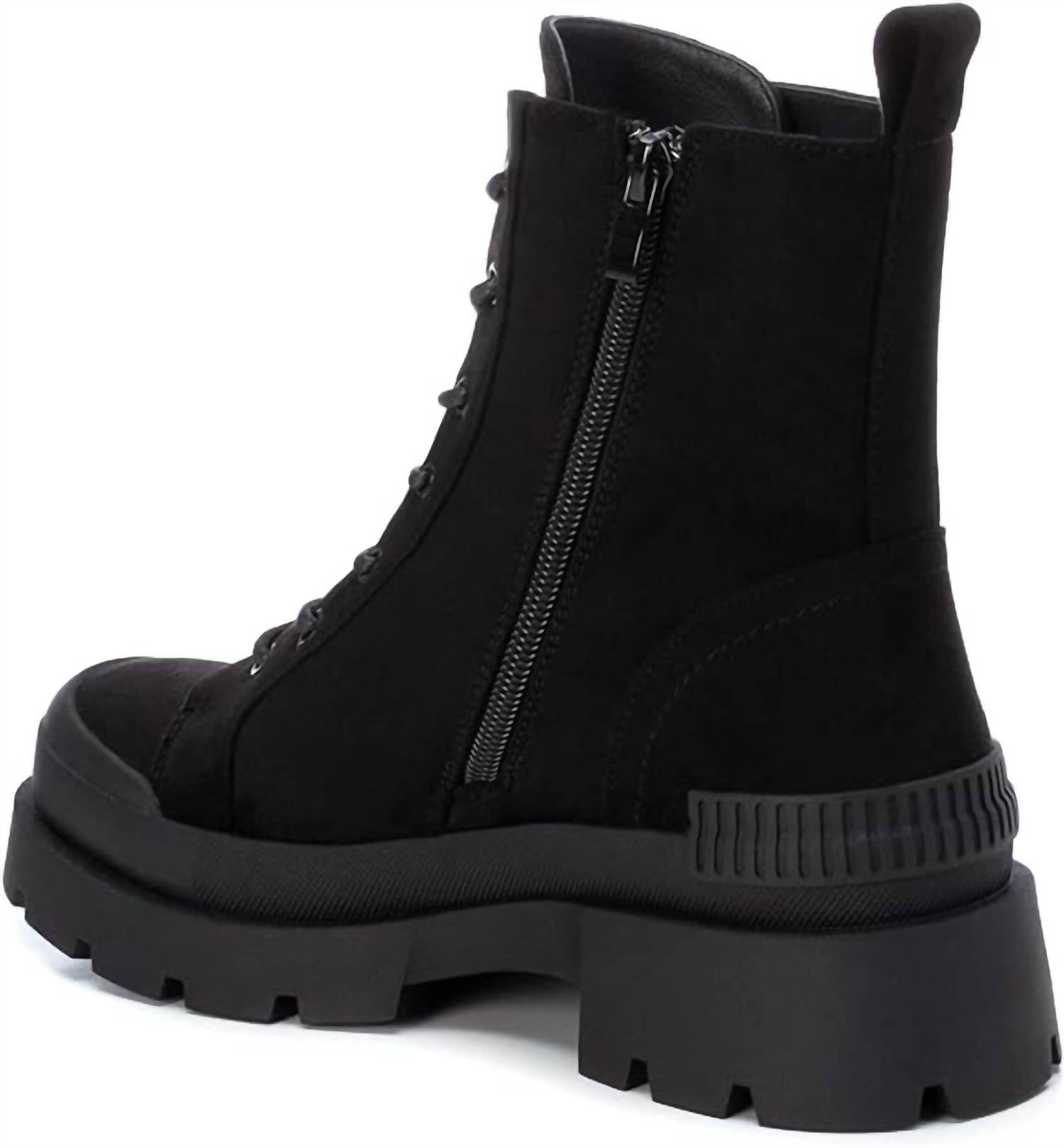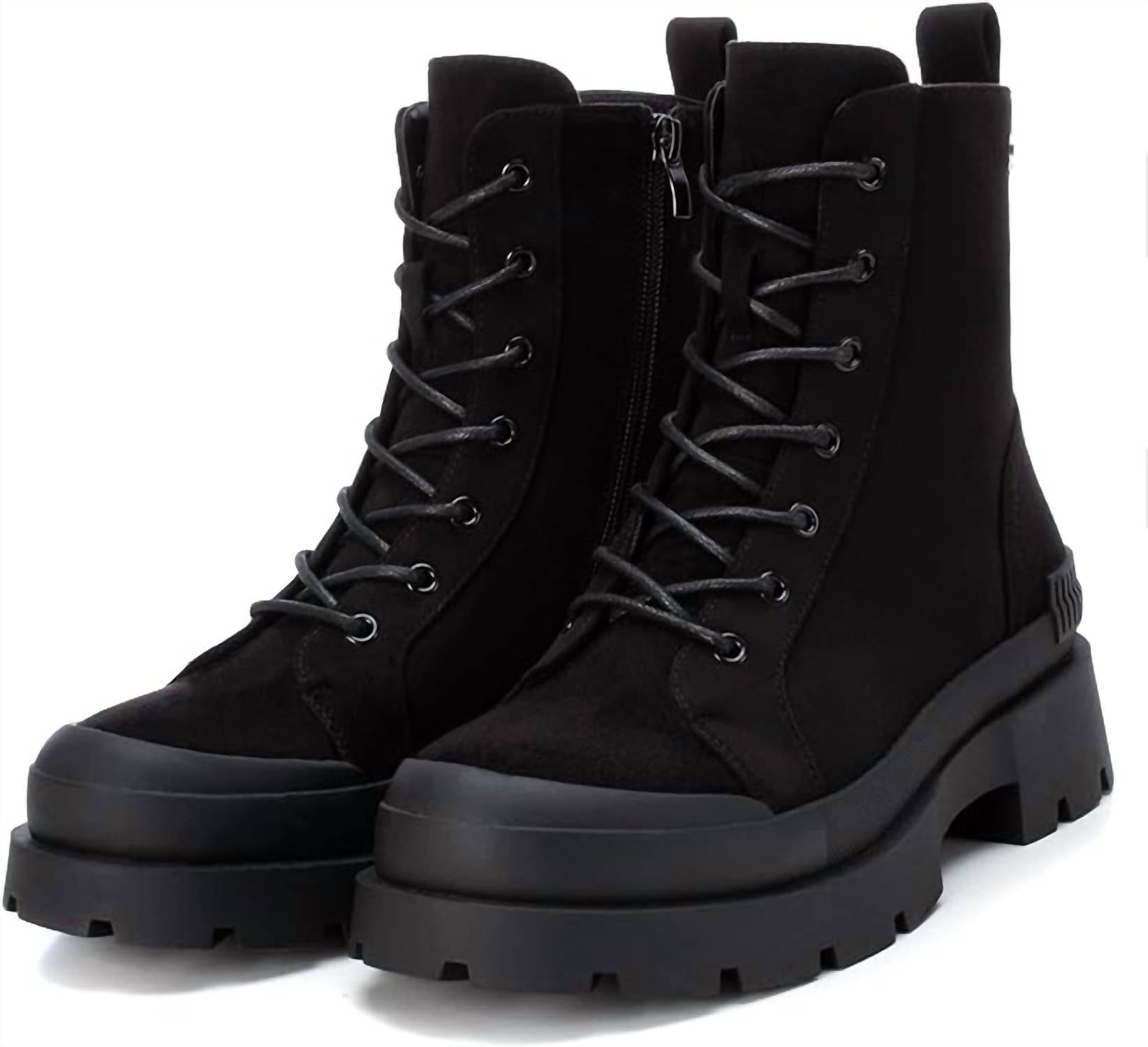 Say hello to the perfect, most versatile boot. The ankle height makes this style easily transition from day to night. Wear them with your favorite skinny jeans and tee for a more laid back look, or pair them with your favorite mini dress and jacket for a night out on the town.Women's Suede Lace-Up Booties by Xti. Premium black suede for casual charm and sophisticated allure. Lace-up design with a side zipper for a snug fit and easy wear. Lightweight construction for all-day comfort. Non-slip rubber sole for stability. Perfect for city streets or countryside strolls. Elevate your fashion effortlessly with these timeless booties.